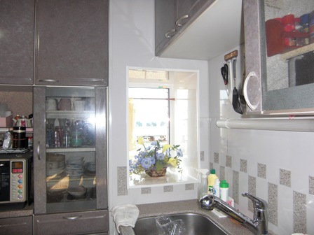 晴れた朝にも蛍光灯を点けなければ手元が暗いキッチンでした。明るいキッチンになりました。お茶碗を洗いながら、外の景色をたのしんでいます。大満足です!