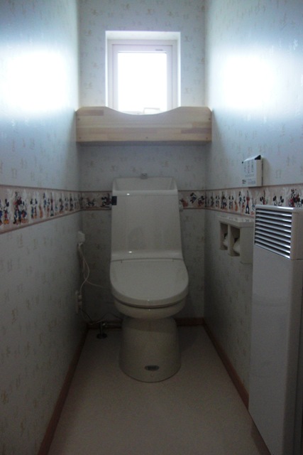 トイレの壁紙はミッキー、さらにトリムにミッキーが行進しています。