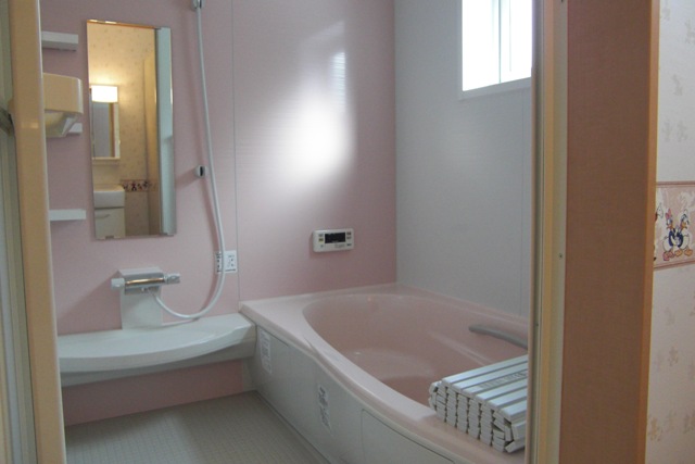 浴室はピンクを基調にゆったりとくつろげる空間になりました。