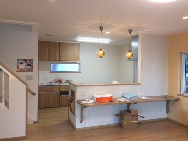 元々対面キッチンでしたが吊戸棚がついていましたが、あまり使用する頻度もないとのことでしたので撤去しました。キッチンや背面収納にも十分な収納力もある為、踏み台を使わなくては使えなかった吊戸棚は撤去して正解でしたと施主様にも言われました