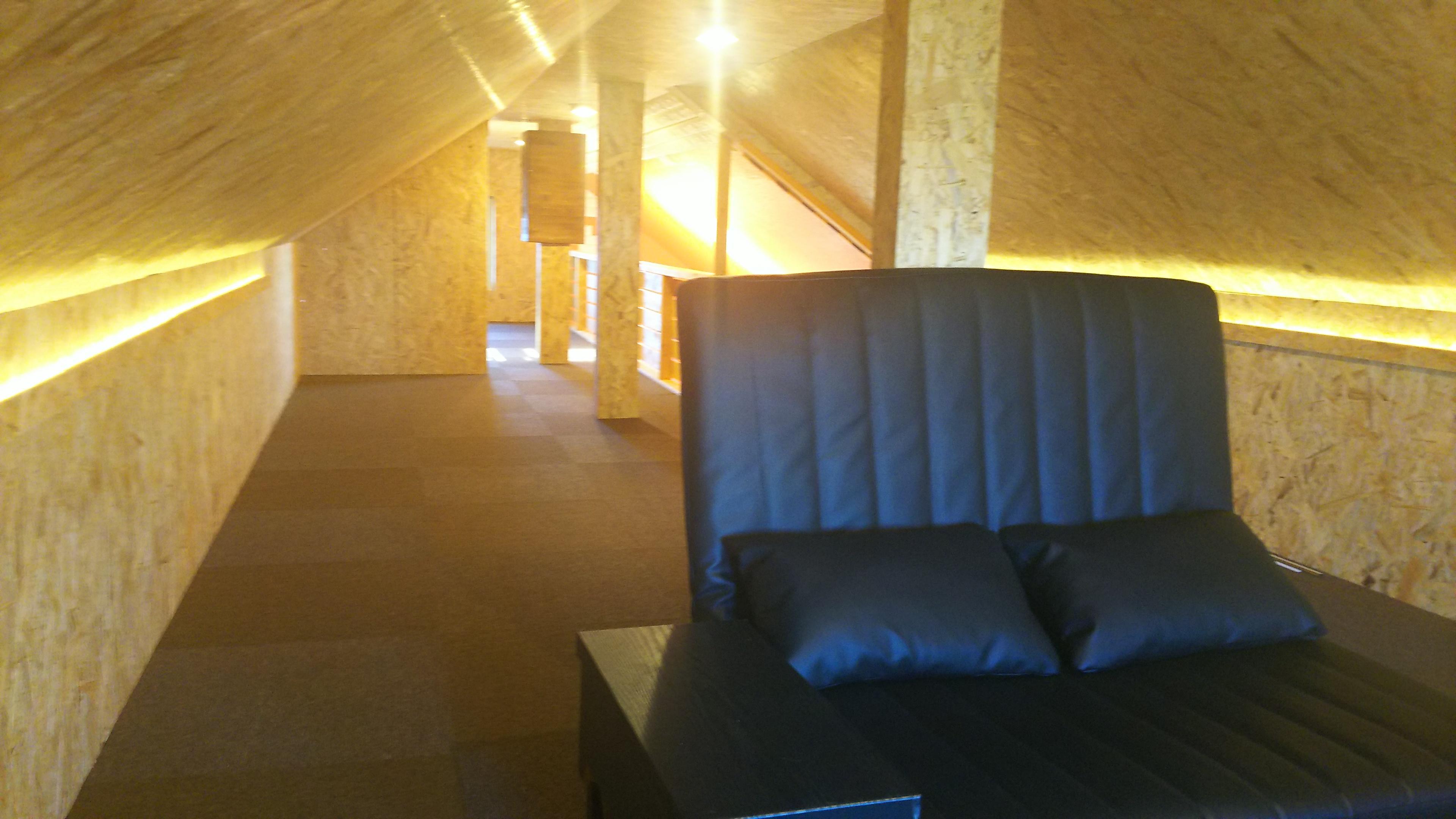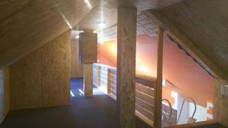 小屋裏スペースをちょっとしたワークスペースと趣味のスペースへと改修しました。 ちょっぴり山小屋感のある温かみを帯びた感じで仕上げています。 外壁も金属サイディングへ貼替をし風除室を付けて一新しました。 ガレージも電動シャッター仕様にし上げ下げ楽々です