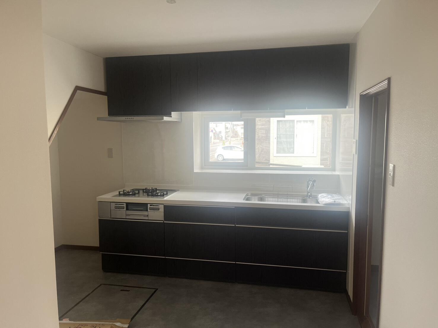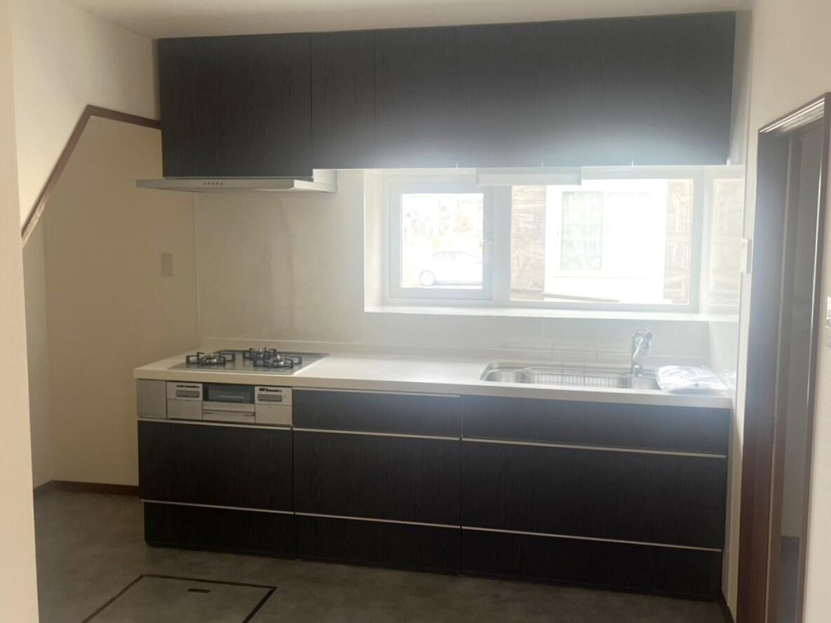キッチンを替えただけで、空間の空気感がここまで変わりました。 やわらかい色味のキッチンから、モノトーンで引き締まったシンプルなキッチンへ。 見た目のスッキリ感はもちろん、拭き掃除もしやすくなり、毎日の家事が軽く感じられる仕上がりです。