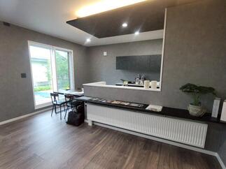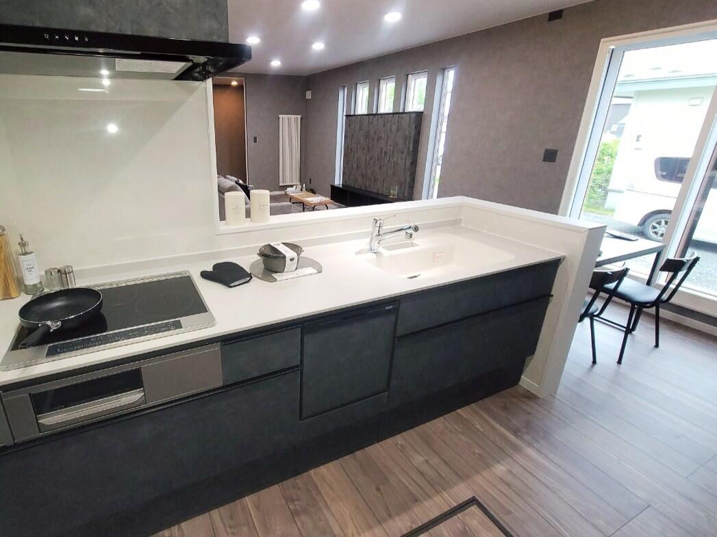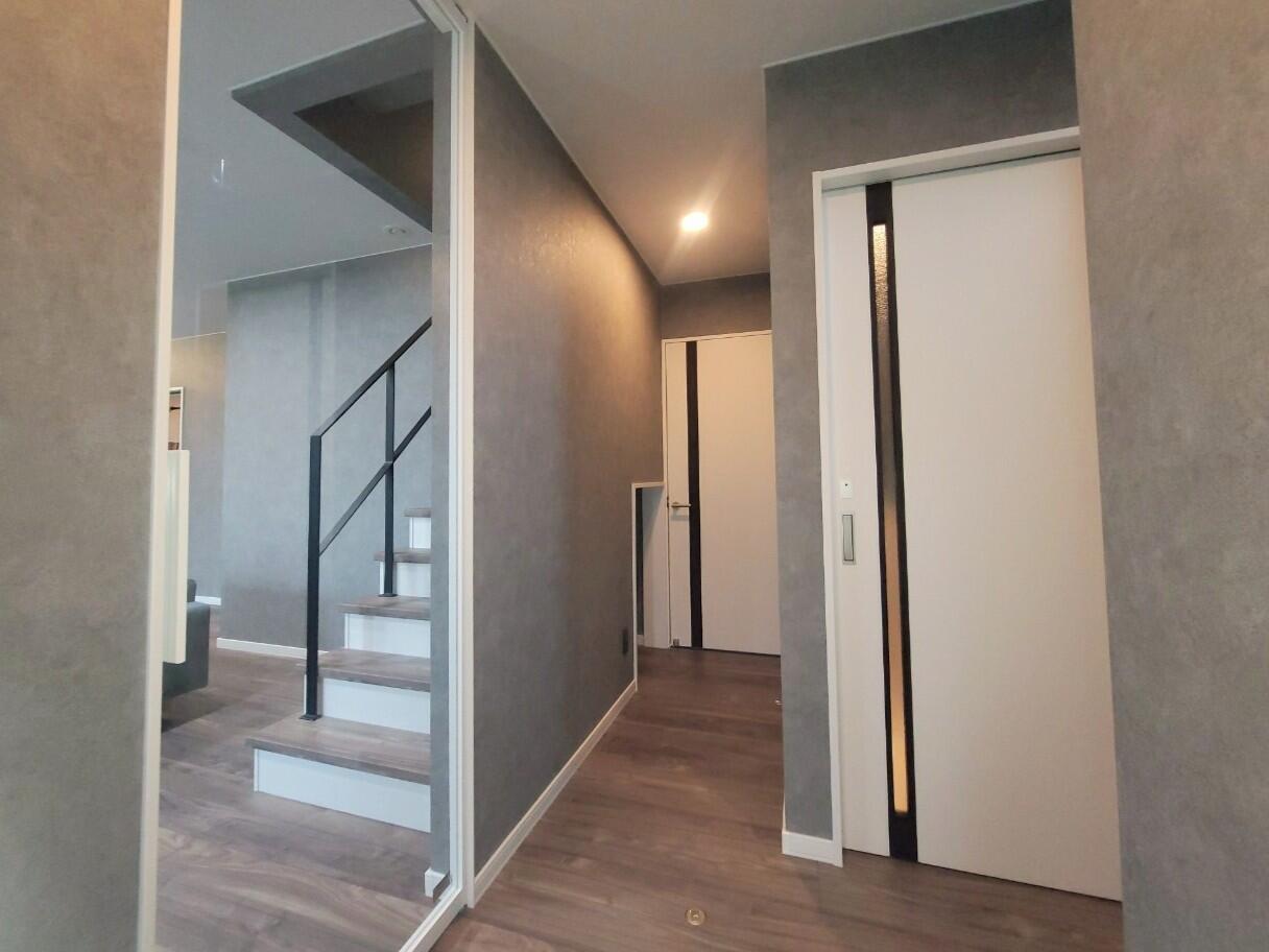 グレーを基調に木目を重ね、ブラックのラインで全体を引き締めました。 素材と色数を整えることで、家全体に統一感が生まれ、どこにいても落ち着く空間に。 見た目だけでなく、日常の使いやすさまで含めて“住まいの質”を上げたフルリノベ事例です。