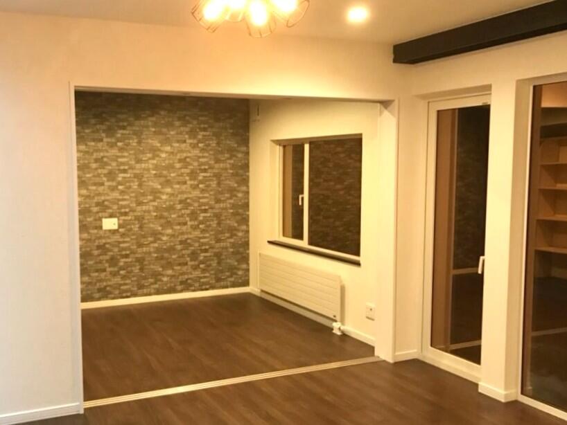居室を、くつろぎの質が上がる空間へリフォームしました。 アクセントクロスで奥行きをつくり、照明計画で明るさを整えることで、部屋全体がぐっと上質な印象に。 床はもとの綺麗なフローリングを活かして落ち着いたトーンにまとめ、心地よい居室になりました。