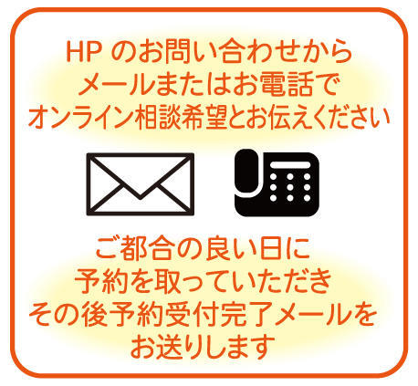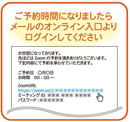 ※Zoomの操作方法に関しましては、予約受付完了メールに記載いたしますのでそちらをご参照ください。