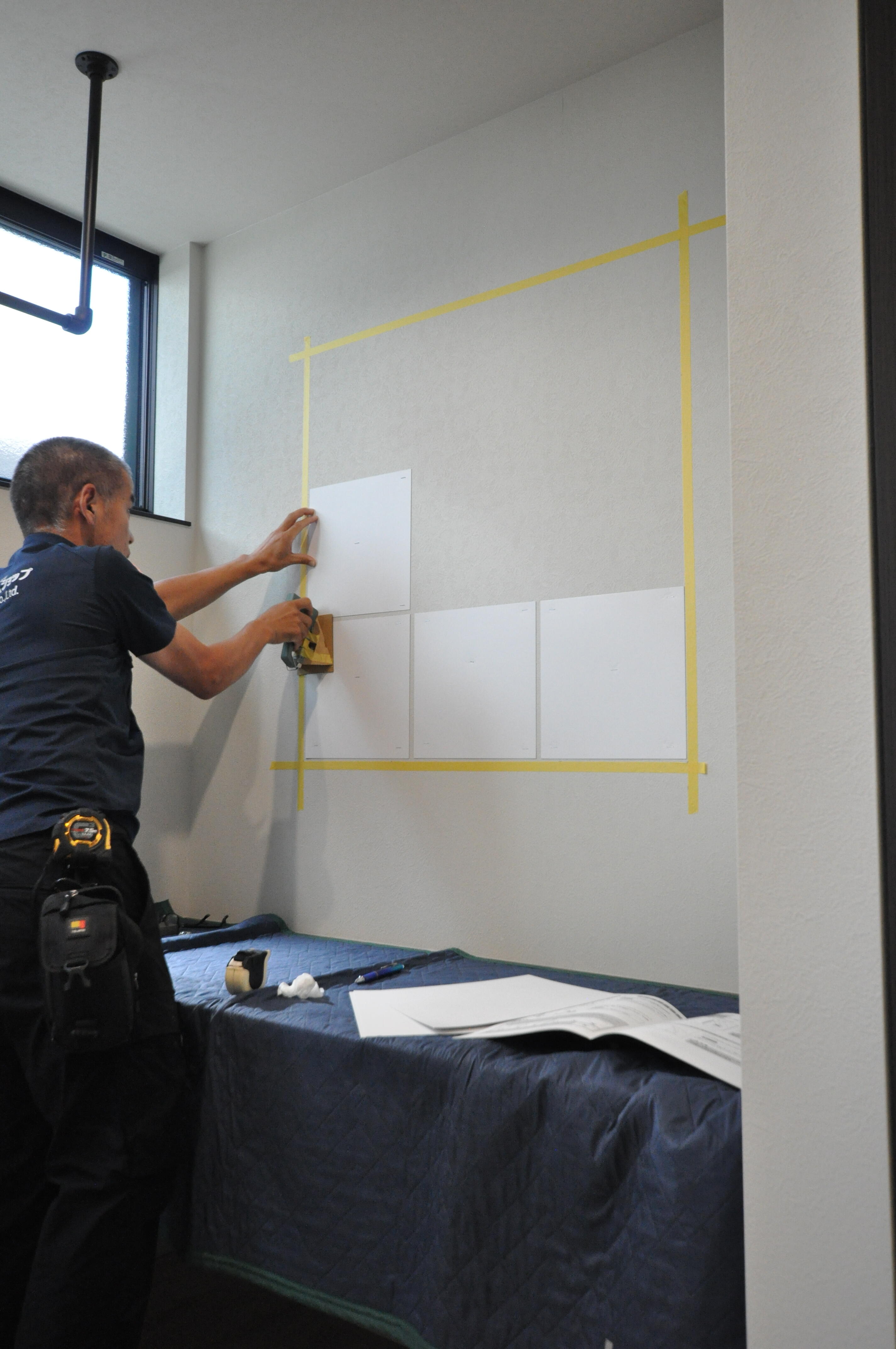 いちよしのモデルハウスにLIXILの調湿建材エコカラットセルフをみんなで施工しました。