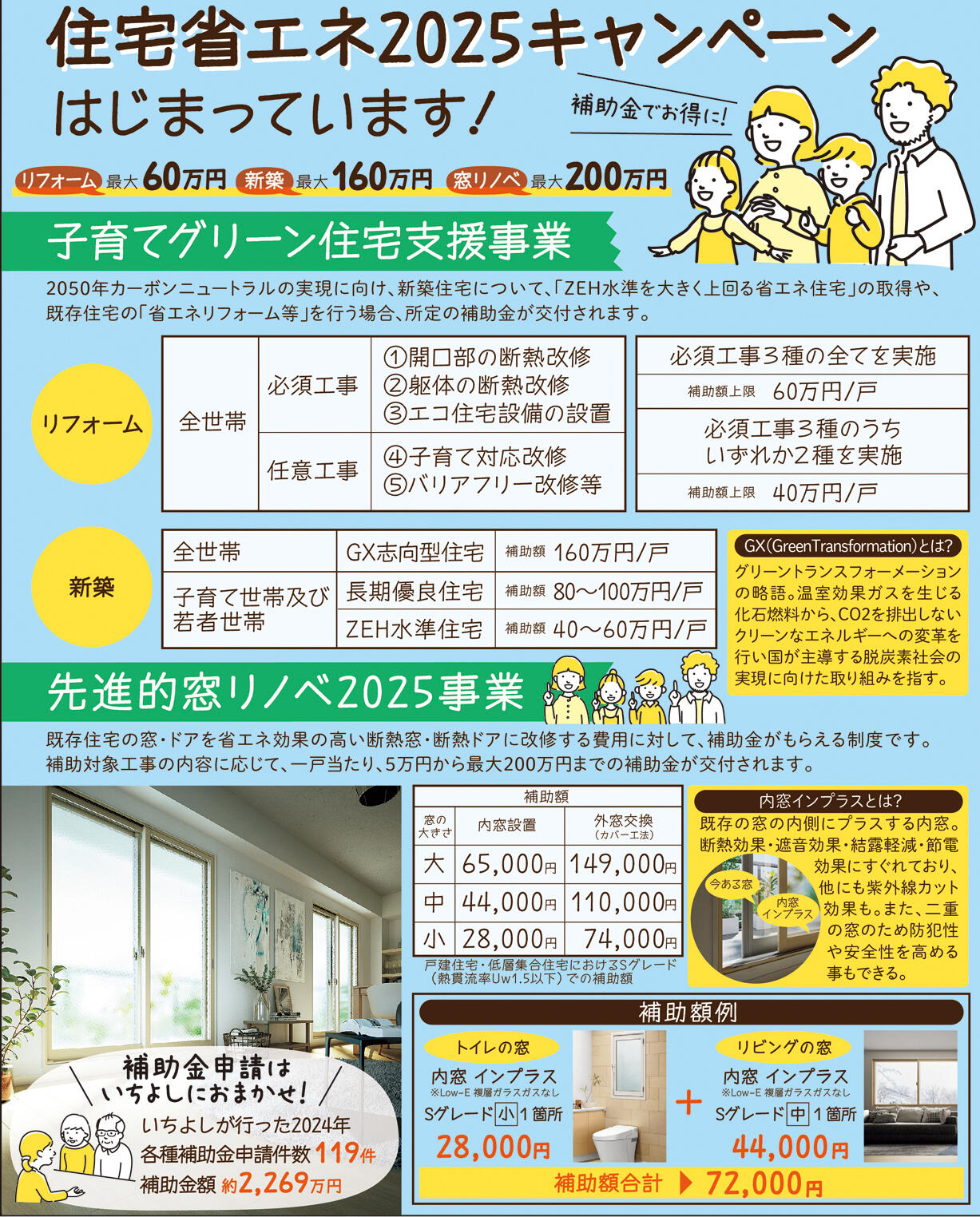 子育てグリーン住宅支援事業と先進的窓リノベ2025事業がはじまっています!