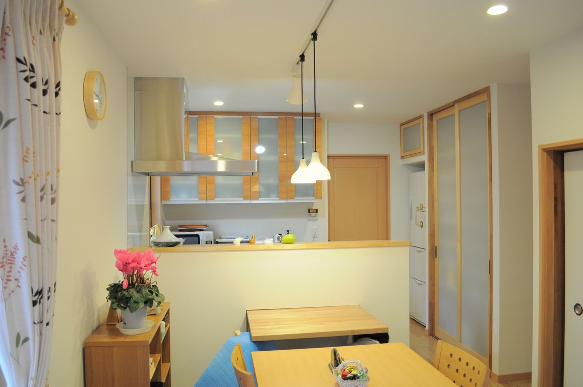 老朽化して不便になっていた水廻りは配置を変え、1階スペースを全てが賄えるようN様の弟さんのアドバイスや知恵をたくさんお借りしながら実現した快適住まいです。