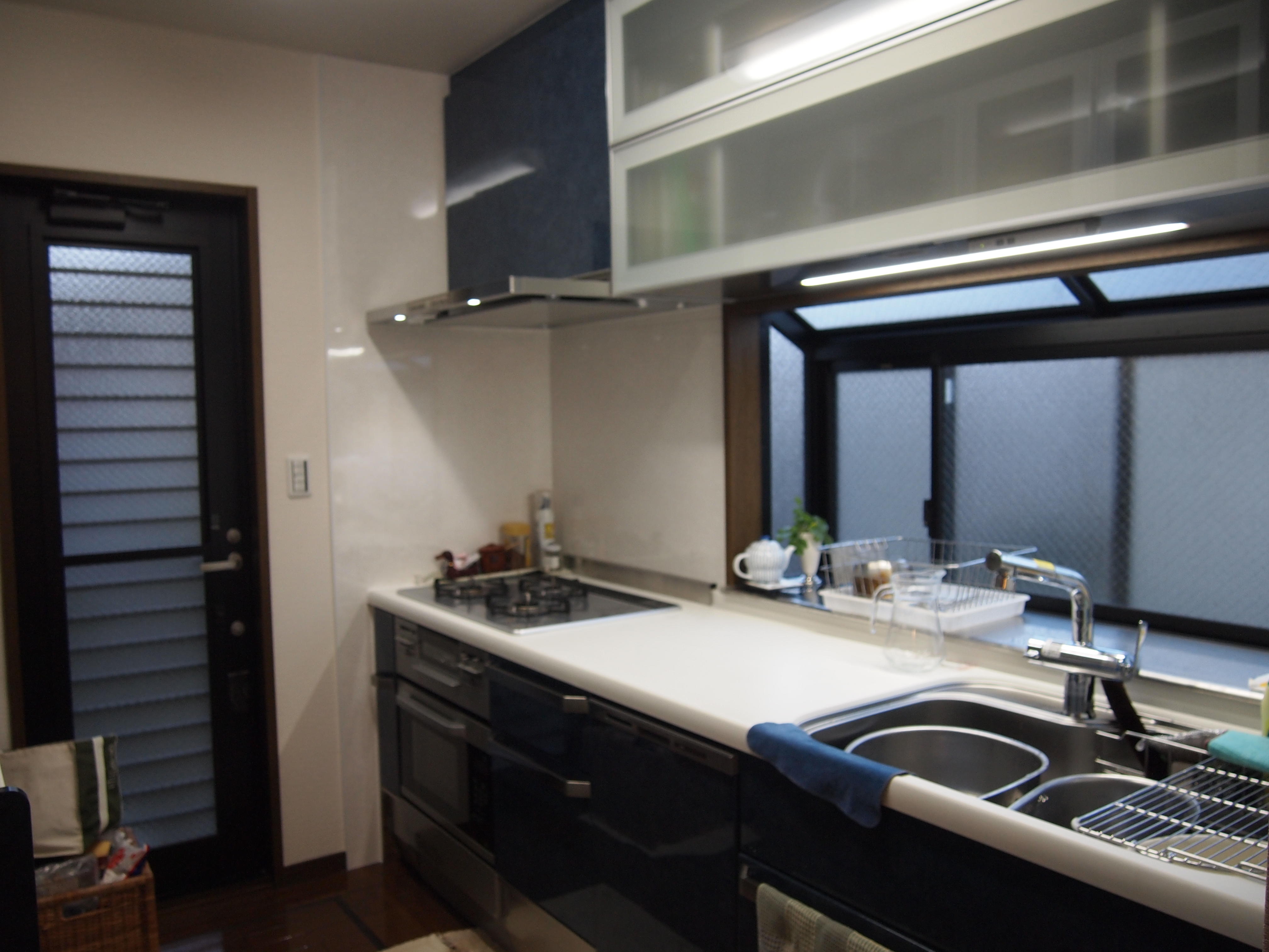 ビジューサファイアというブルーの扉が家の雰囲気にもしっくり馴染みます。クリナップでしか取扱いのない洗エールレンジフード・オートムーブ吊戸棚をつけ、機能面もよくなりました。