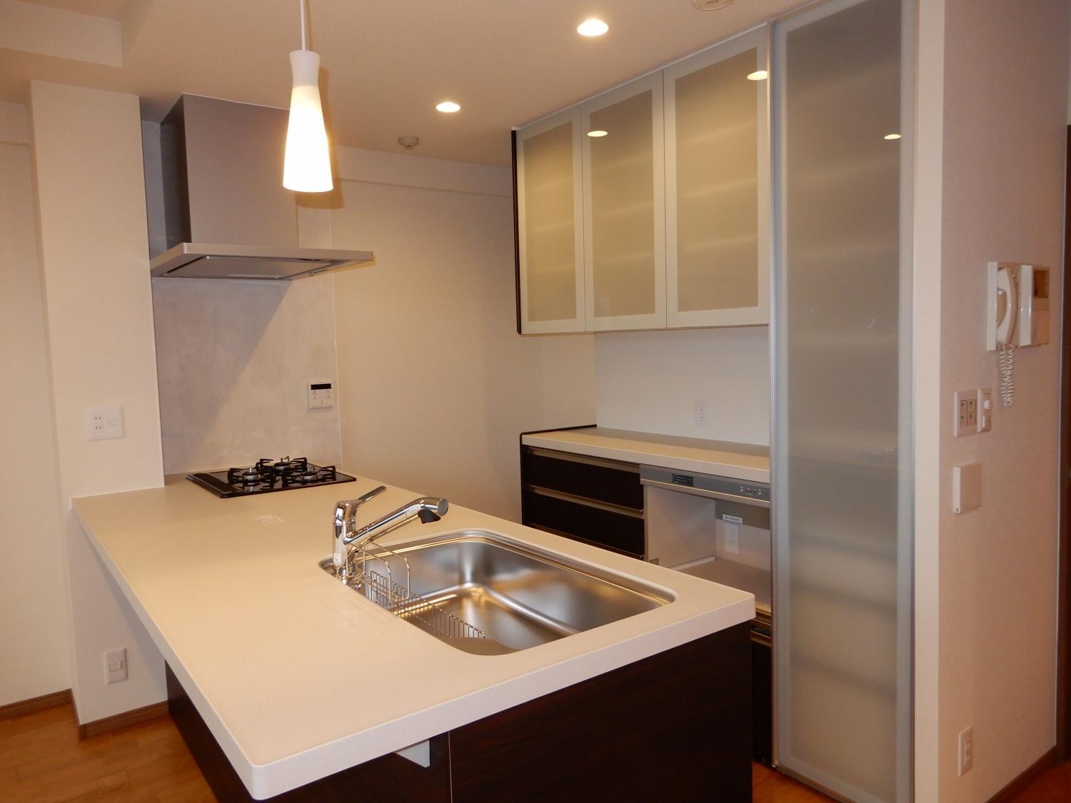 設備や内装が古くなり全面リフォームを。壁に囲われ閉塞的だったキッチンを開放しました。
