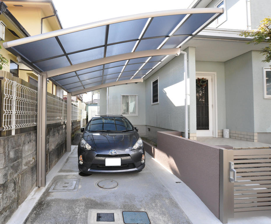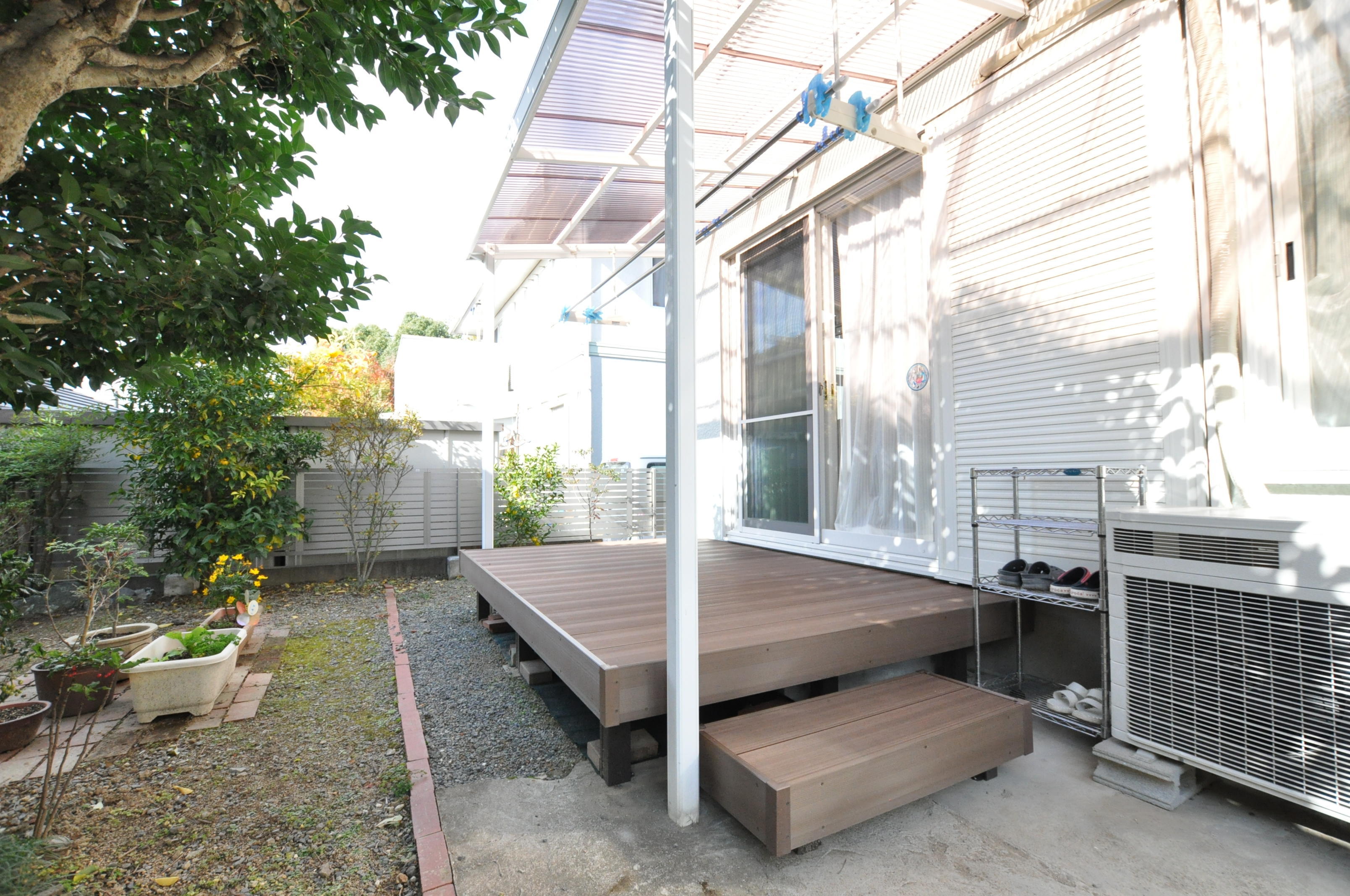 外構工事とカーポート、ウッドデッキを設置工事をさせていただきました。