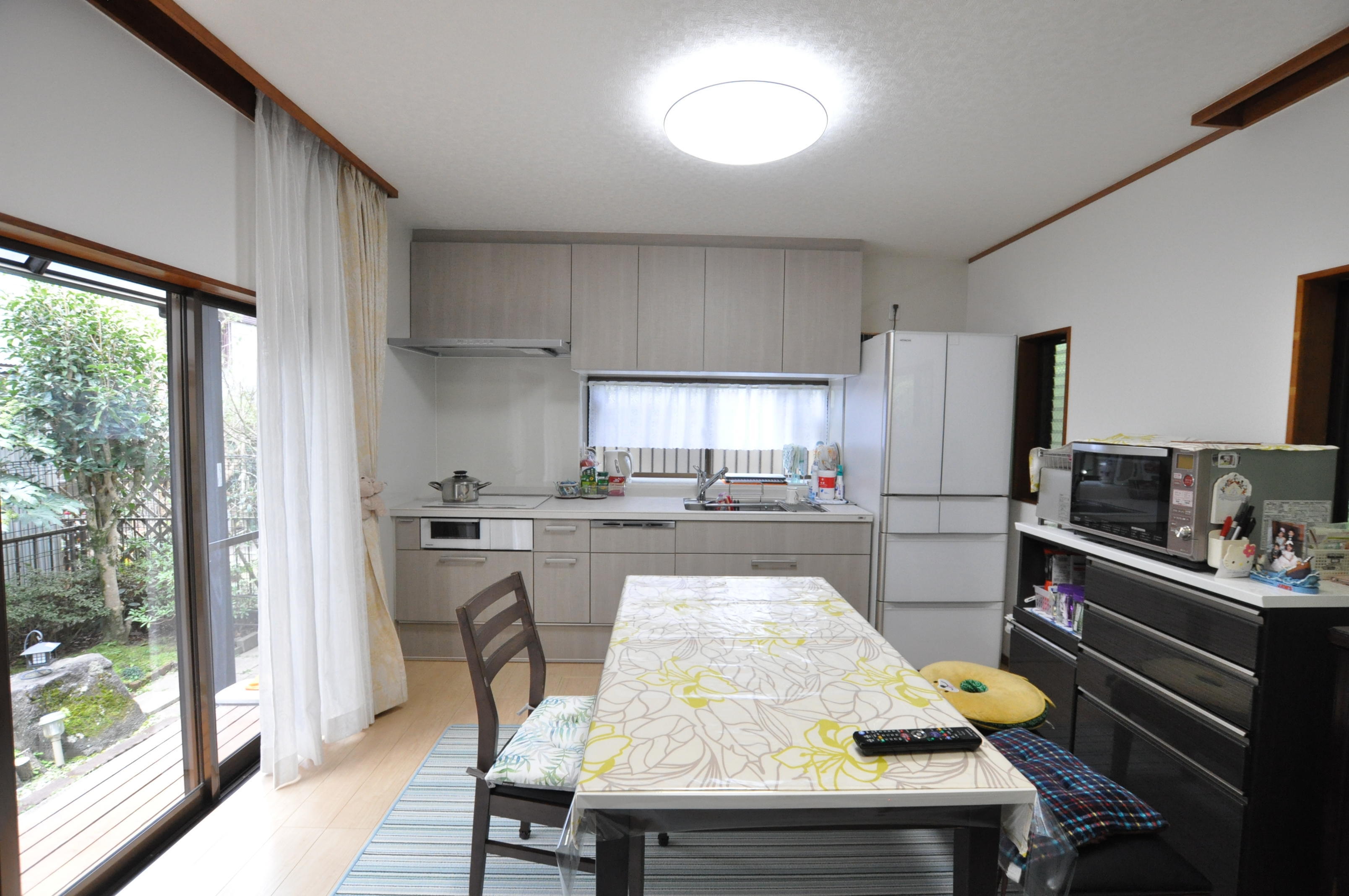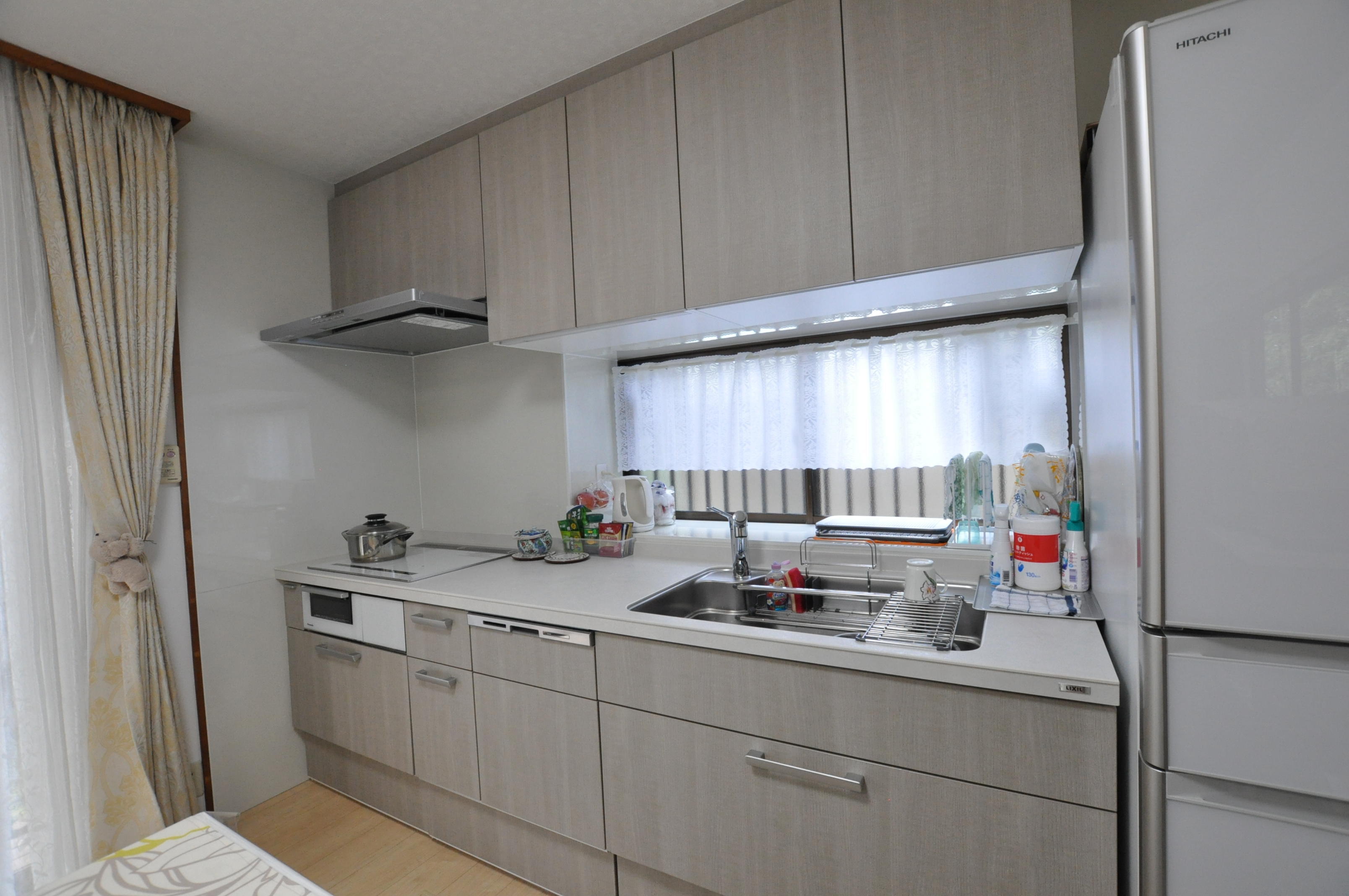 タイルだった壁や、ステンレスのカウンターにキッチンパネルをはりお手入れもしやすくなりました。 キッチンの中に十分収納できるので食器棚は処分。白い壁紙と明るい色の床にしたことで、同じ広さとは思えないほどお部屋が広く感じられます。これまでいつかしたいなと思っていたことをまとめて工事したことですっきりしました。満足です。