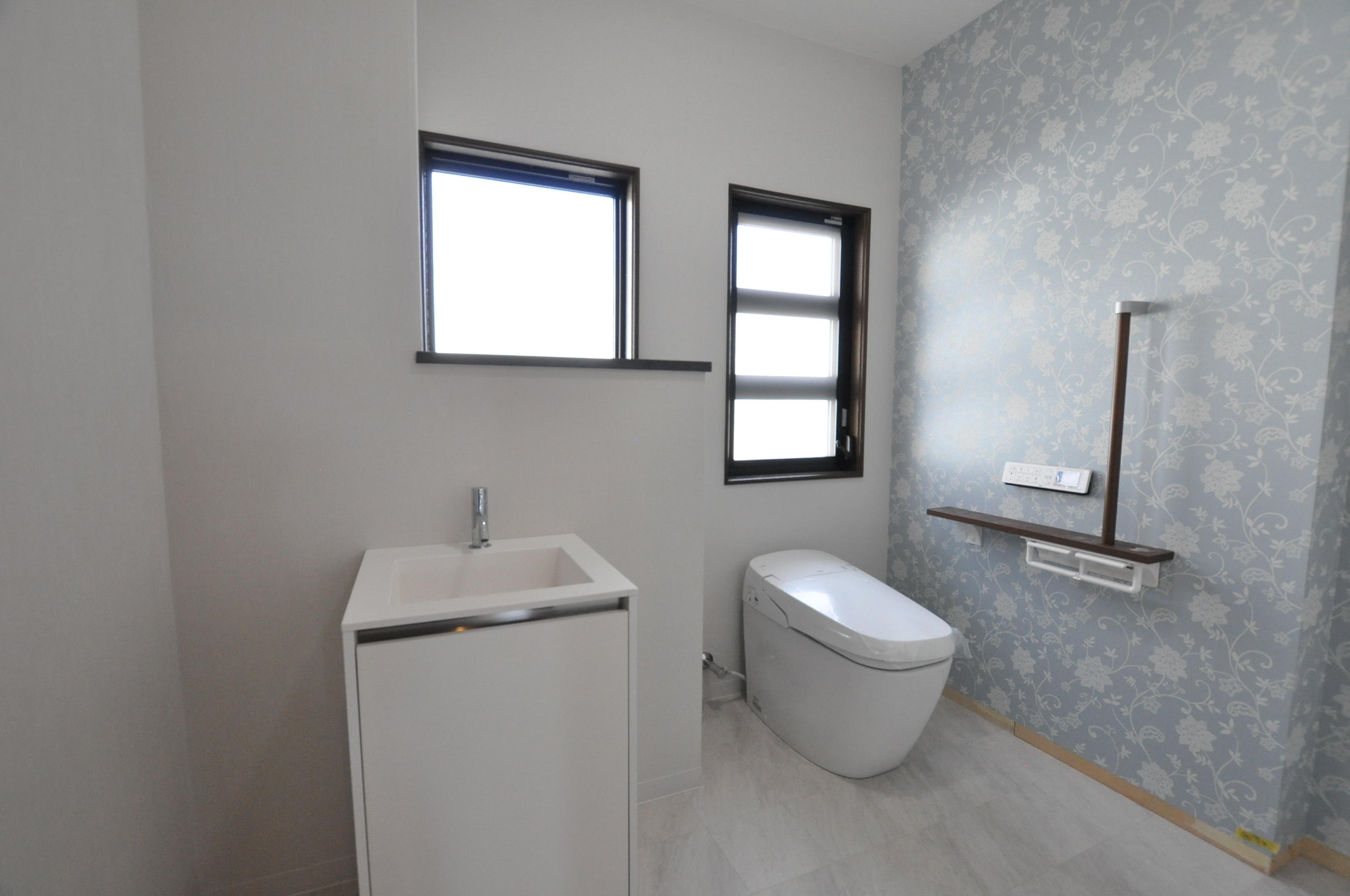 水廻り設備以外にも照明や壁紙もご夫婦でショールームに足を運び、 ご選定いただきました。 途中コロナ禍でなかなかショールームに行けない時期もありましたが、 その間もネットやカタログでご検討いただきとてもありがたかったです。 吟味された子供さんのお部屋や、トイレのアクセントクロスの可愛さに 社内検査に入った住まいメイトの児島と貸川も感激していました。