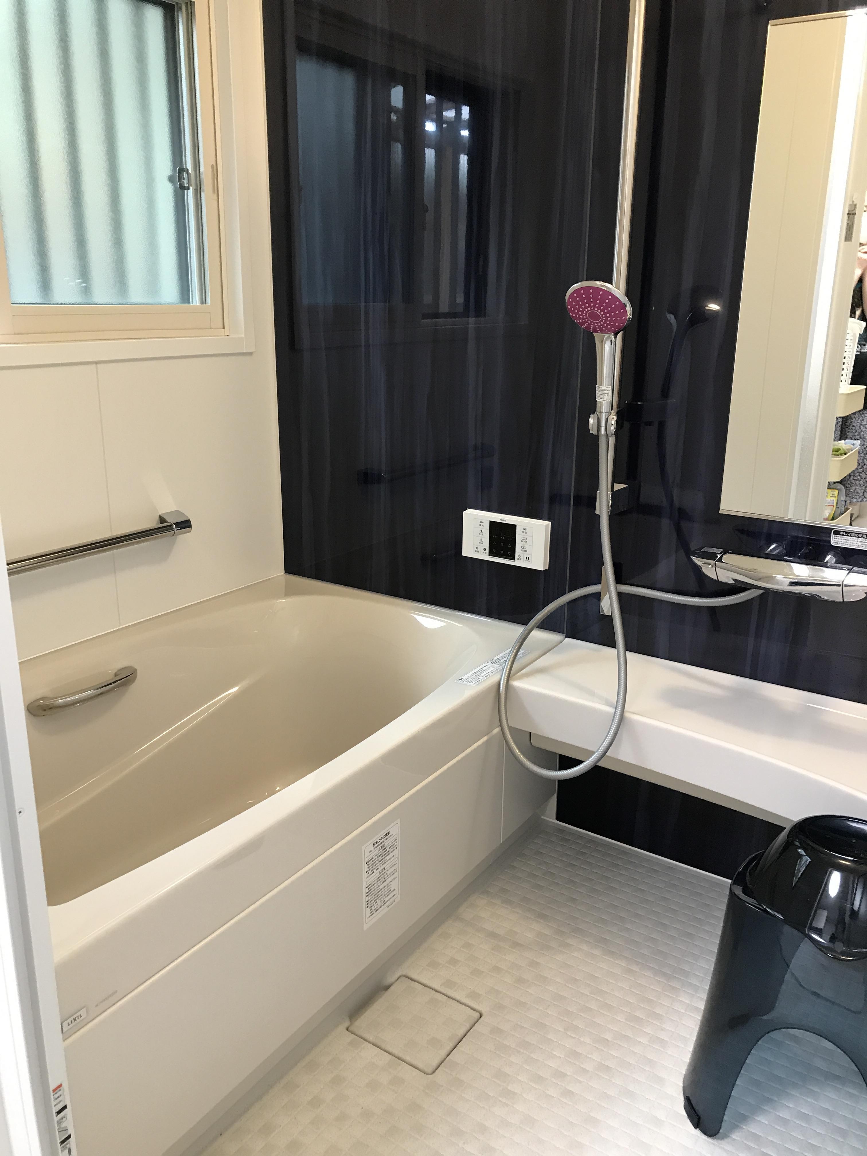 浴室のバリアフリーリフォームをさせていただきました。 浴槽が深く出る時に負担がかかっていたので今回のリフォームとなりました。 介護保険を使っての住宅改修で負担が軽減され、 足が弱ってきたお母様も安心して入っていただけるお風呂になりました。