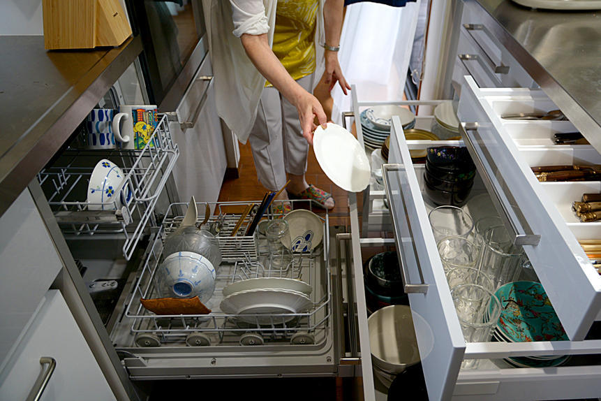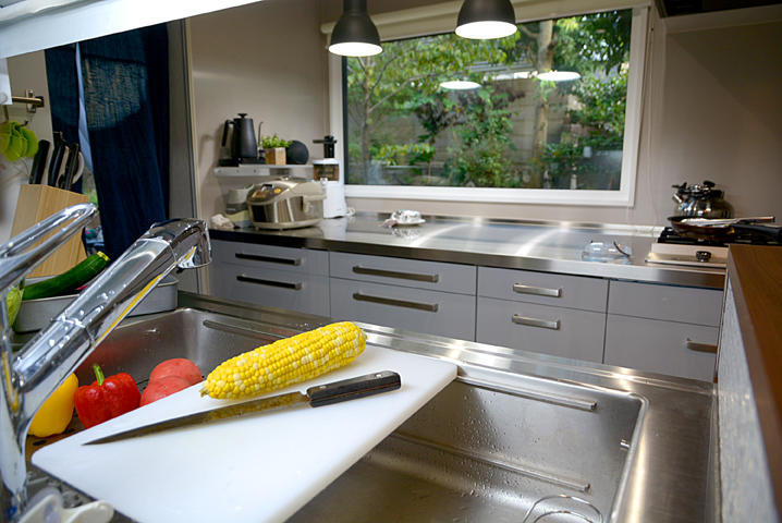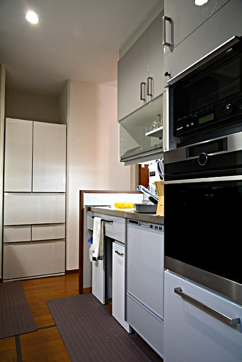 今回のリフォームは間取りの変更はなく、システムキッチンのリニューアルとその配置変更が主な内容です。 コンロ側システムキッチンは奥行900㎜の物を選び、天板の表面積が大幅に拡大、 ゆとりのある作業スペースと配膳スペースが生まれました。 カップボードを廃止した収納スペースの減少は、 コンロ側システムキッチンを全て引き出しにしたことで 以前以上の収納力を確保しました。 限られた中で作業面積と収納空間を増やし、 動線の短縮にこだわったリフォームの成功に大変満足です!
