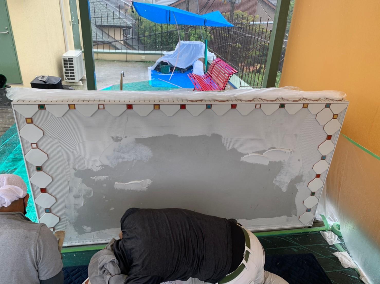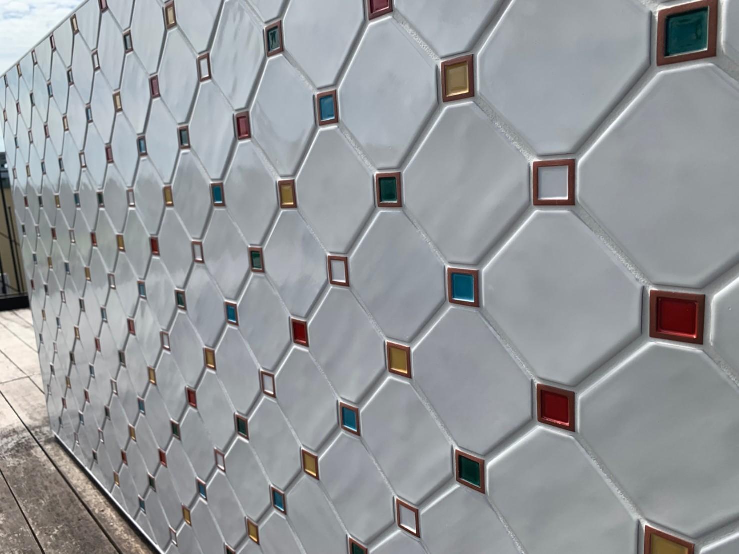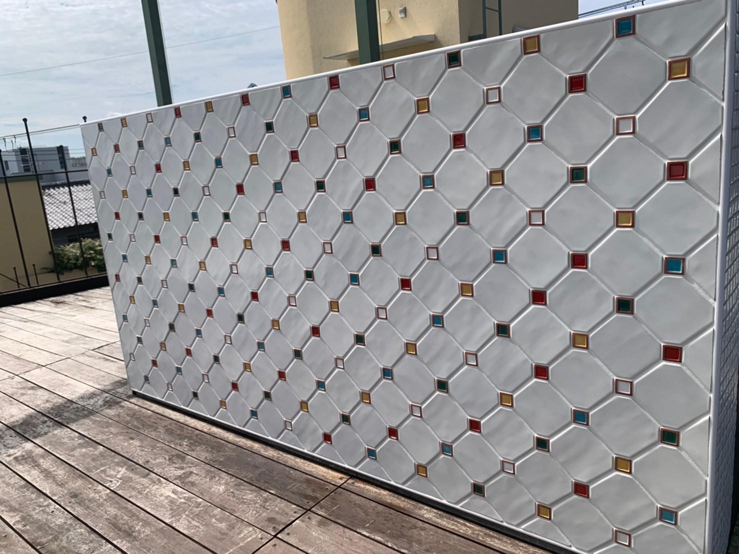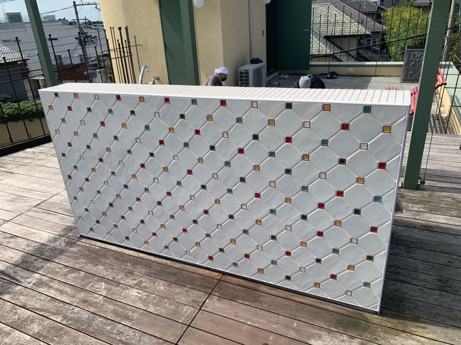 ガーデンシンクのリフォームをさせていただきました。 均等に配置されたカラフルでかわいいタイルが目をひきます。 眺めているだけでも楽しい気持ちに!