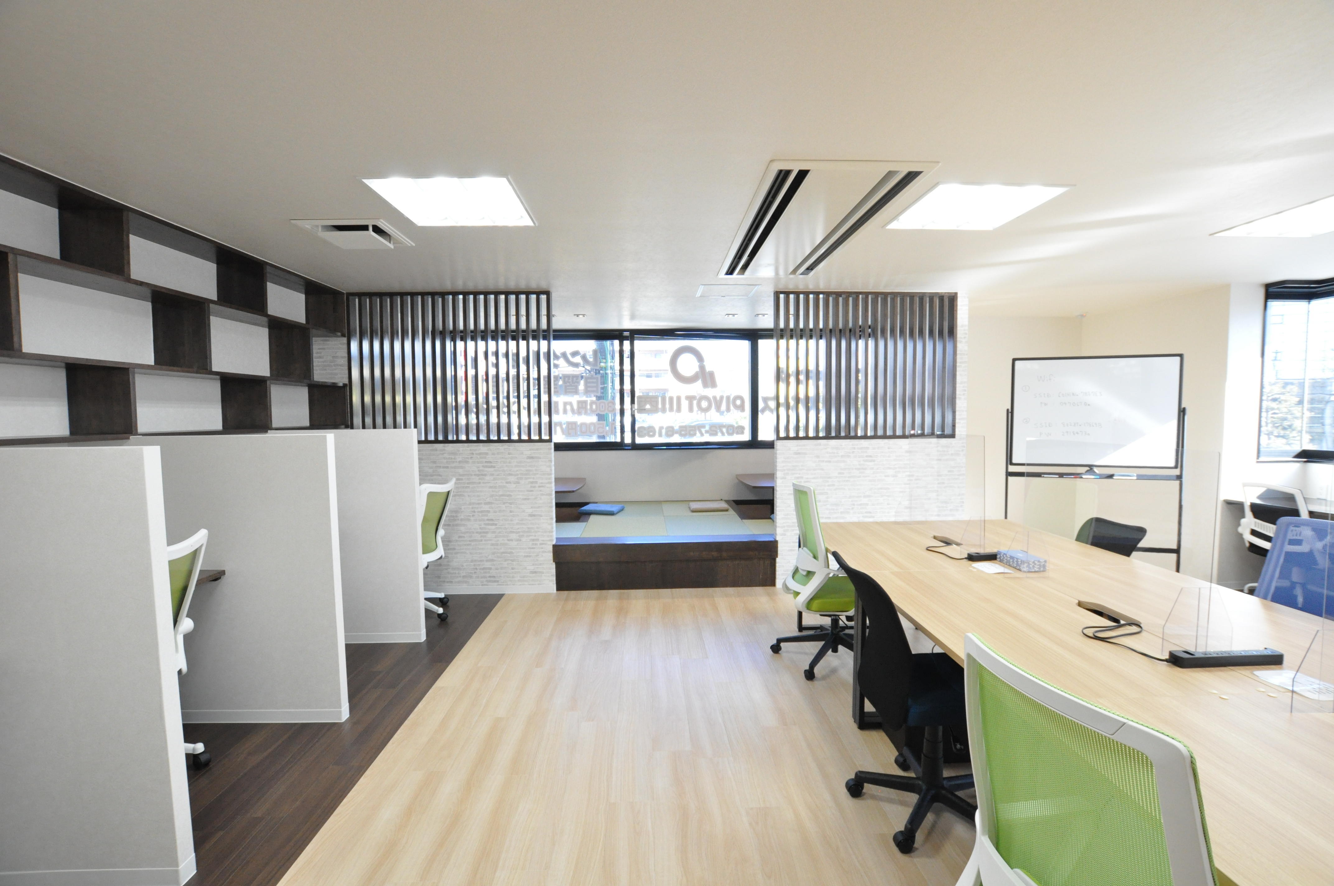 コワーキングスペースの新設でPIVOT川西様(川西市中央町大陽ビル2F)の 内装工事をさせていただきました。 オフィスといえば冷たい印象のインテリアになりがちですが床をフローリング調にしたり、畳や木の格子があることでカフェのようにリラックスして作業できる空間ができました。 訪れる人の様々なニーズに合うように、一人で集中して作業できるエリアやミーティングできるエリア、他の利用者さんと交流が図れるエリアがあります。 ぜひみなさんも訪れてみて下さい。