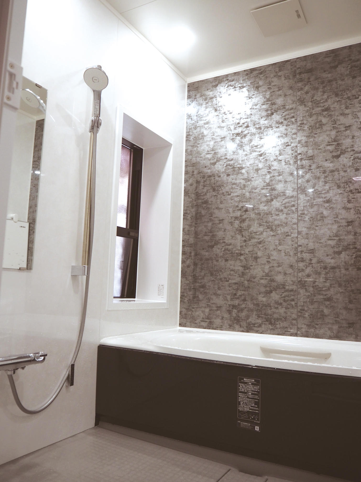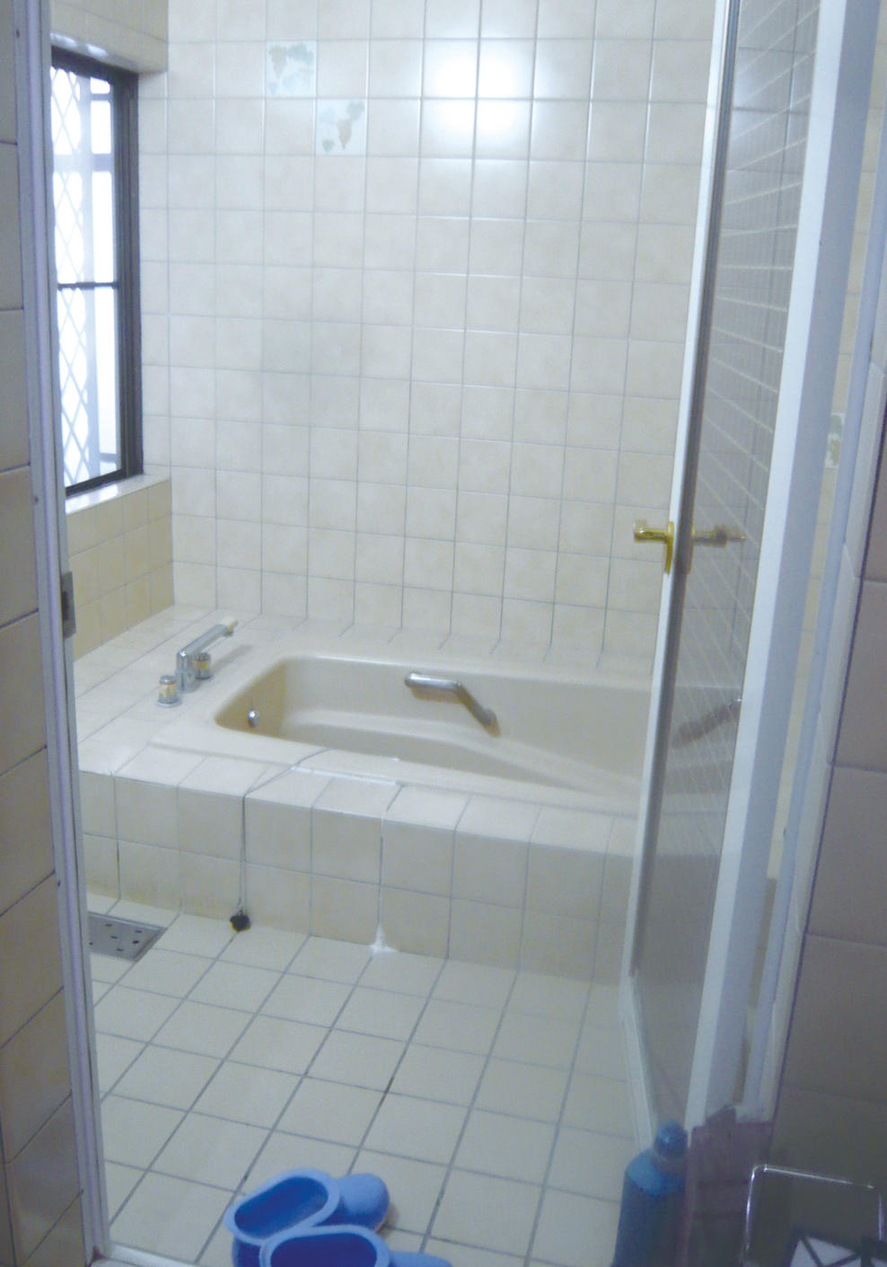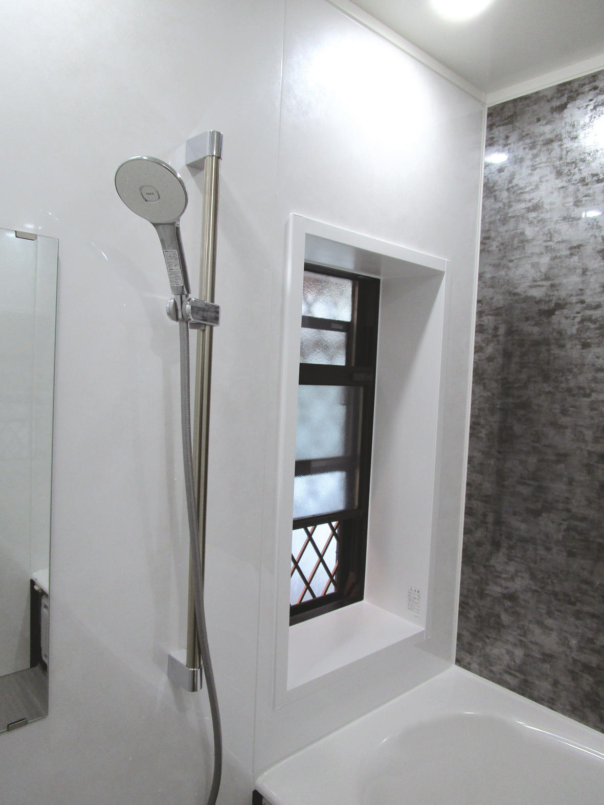 在来タイルのお風呂からLIXILリデアへ。 寒さ対策として大きかった窓を小さくし、断熱窓に。 出入り口の段差解消で安全にも配慮しました。