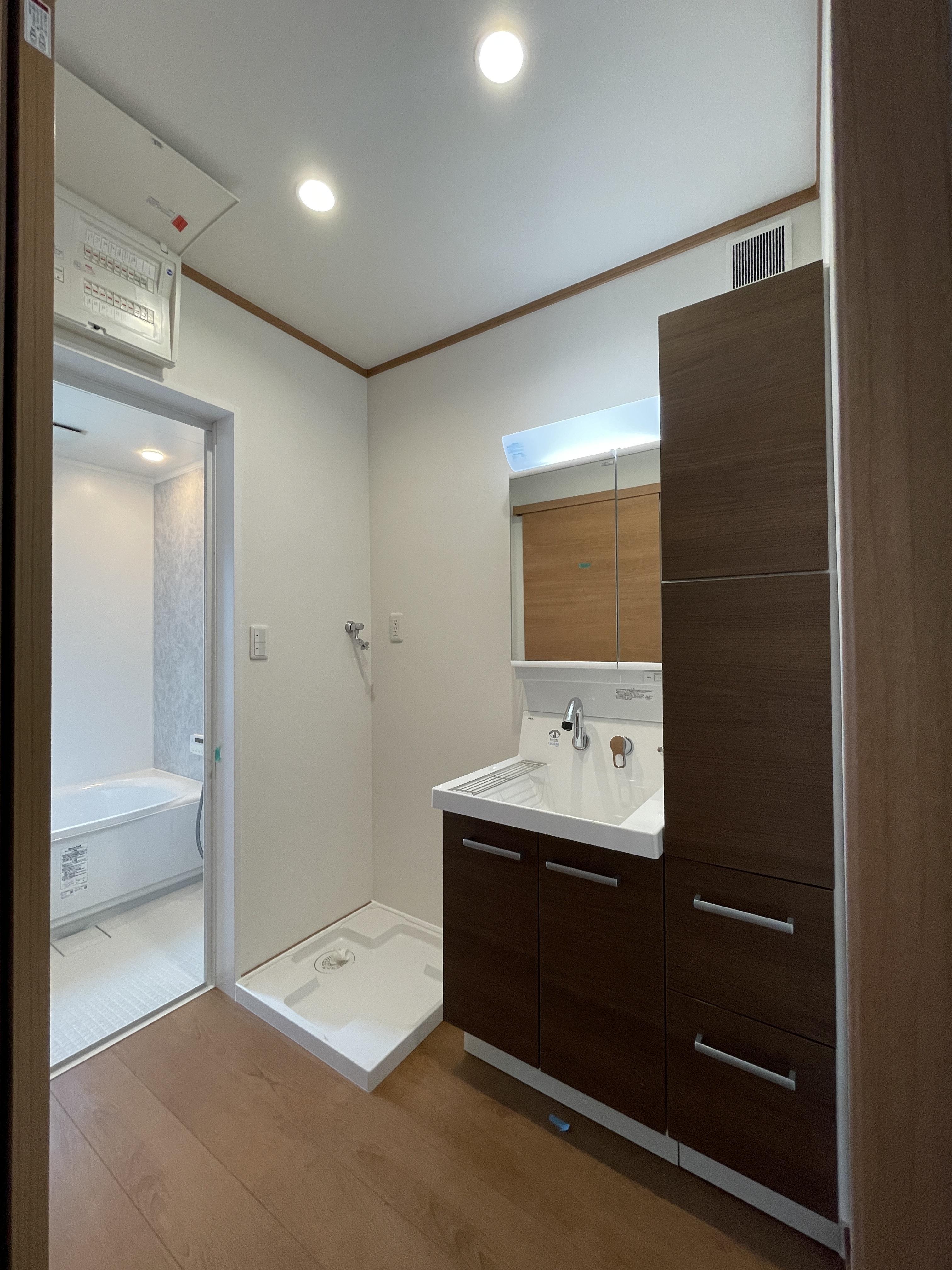 玄関から入ってすぐに水回りがあった間取りを、キッチンも入ったリビングから直接、洗面脱衣室・浴室にいけるようにとご提案し、さらに断熱性の高い窓や玄関引戸を入れ替え、快適に過ごしていただけるようになりました。
