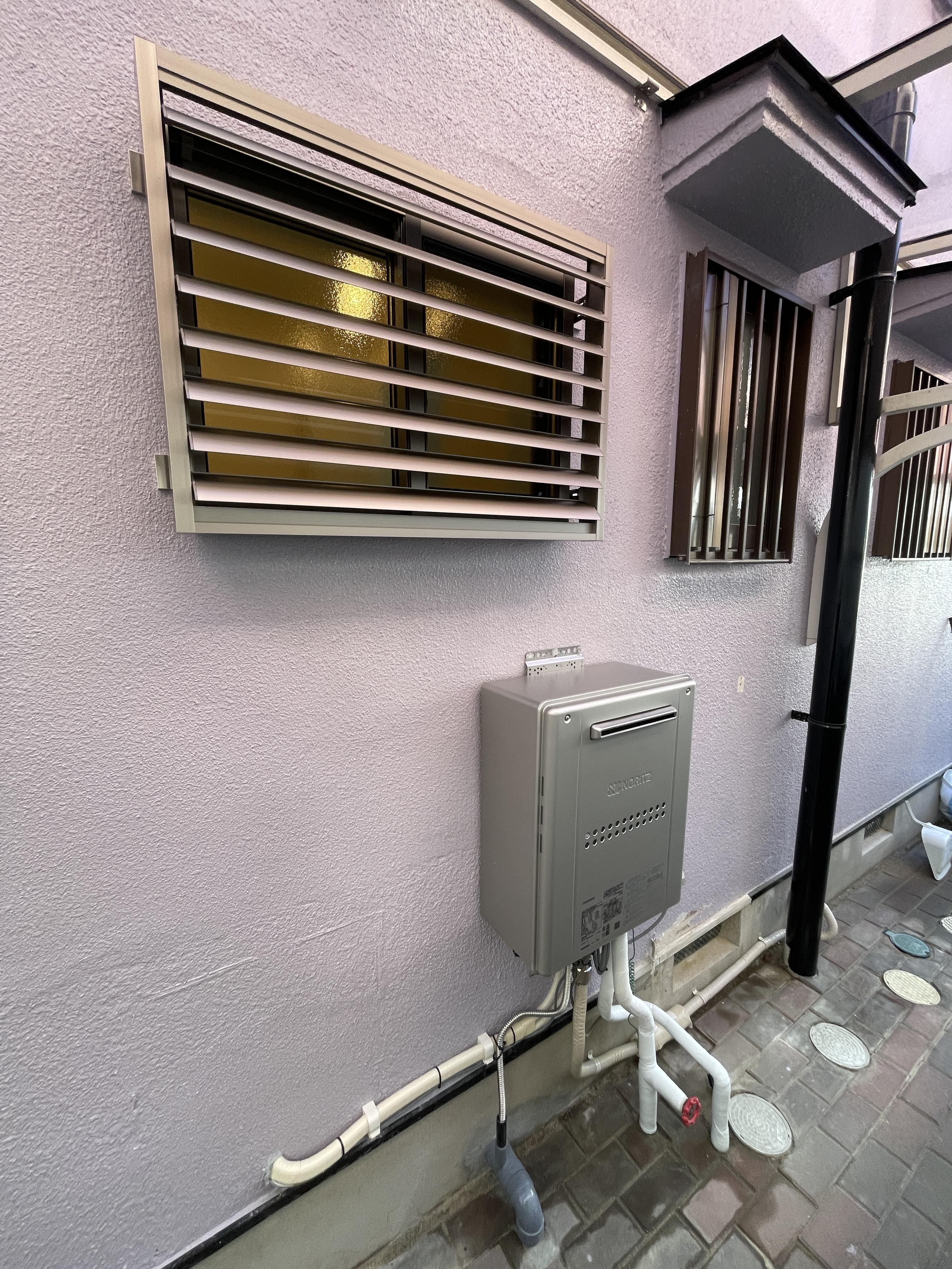 大きかった窓を小さくして断熱効果UP。 外壁も違和感なく仕上がりました。 目隠し可動ルーバーで視線を遮りながら窓を開けて換気もでき採光性もあるので便利です。