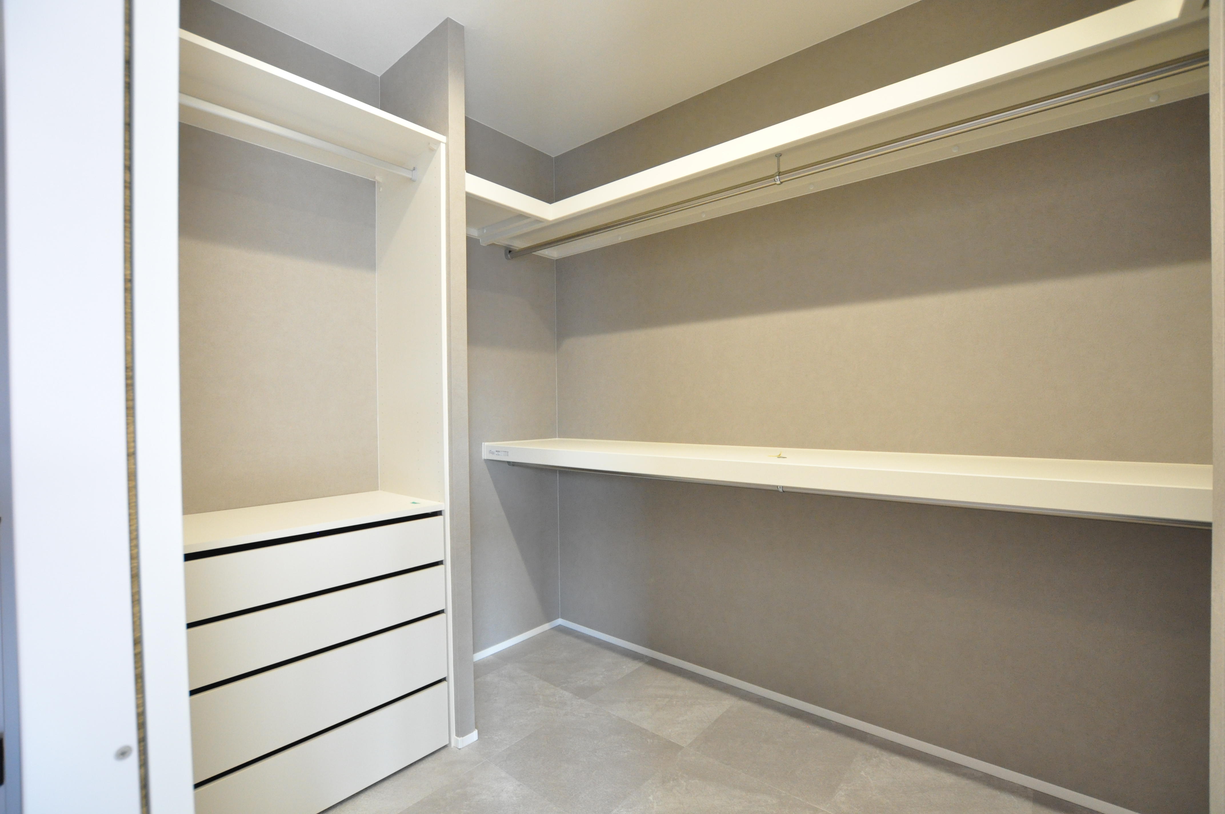 2階は元々広い収納スペースがあり、そこにシステム収納や可動棚を設置。