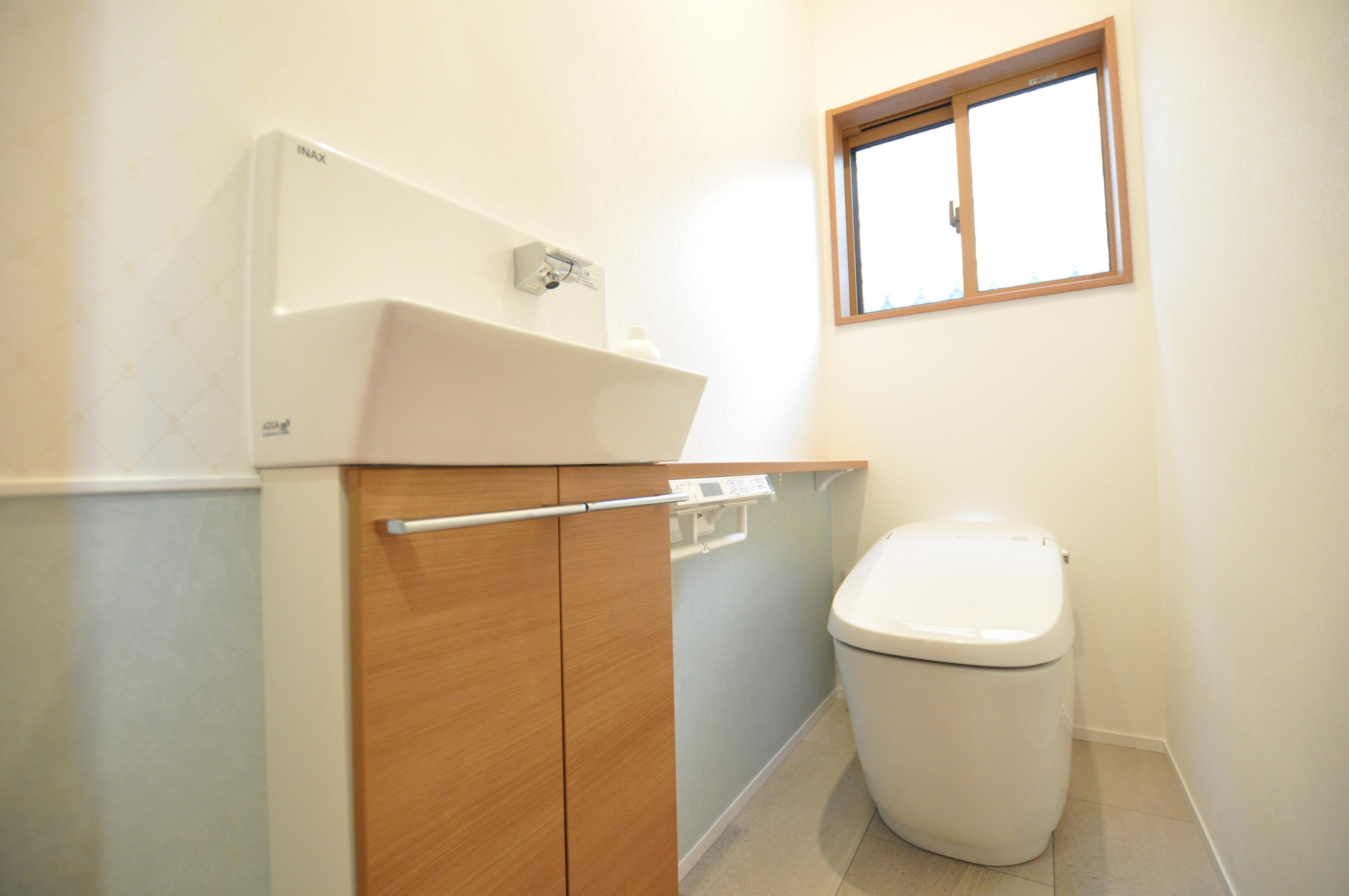 トイレはサティスXを採用し、日々の家事軽減にも繋がっています。