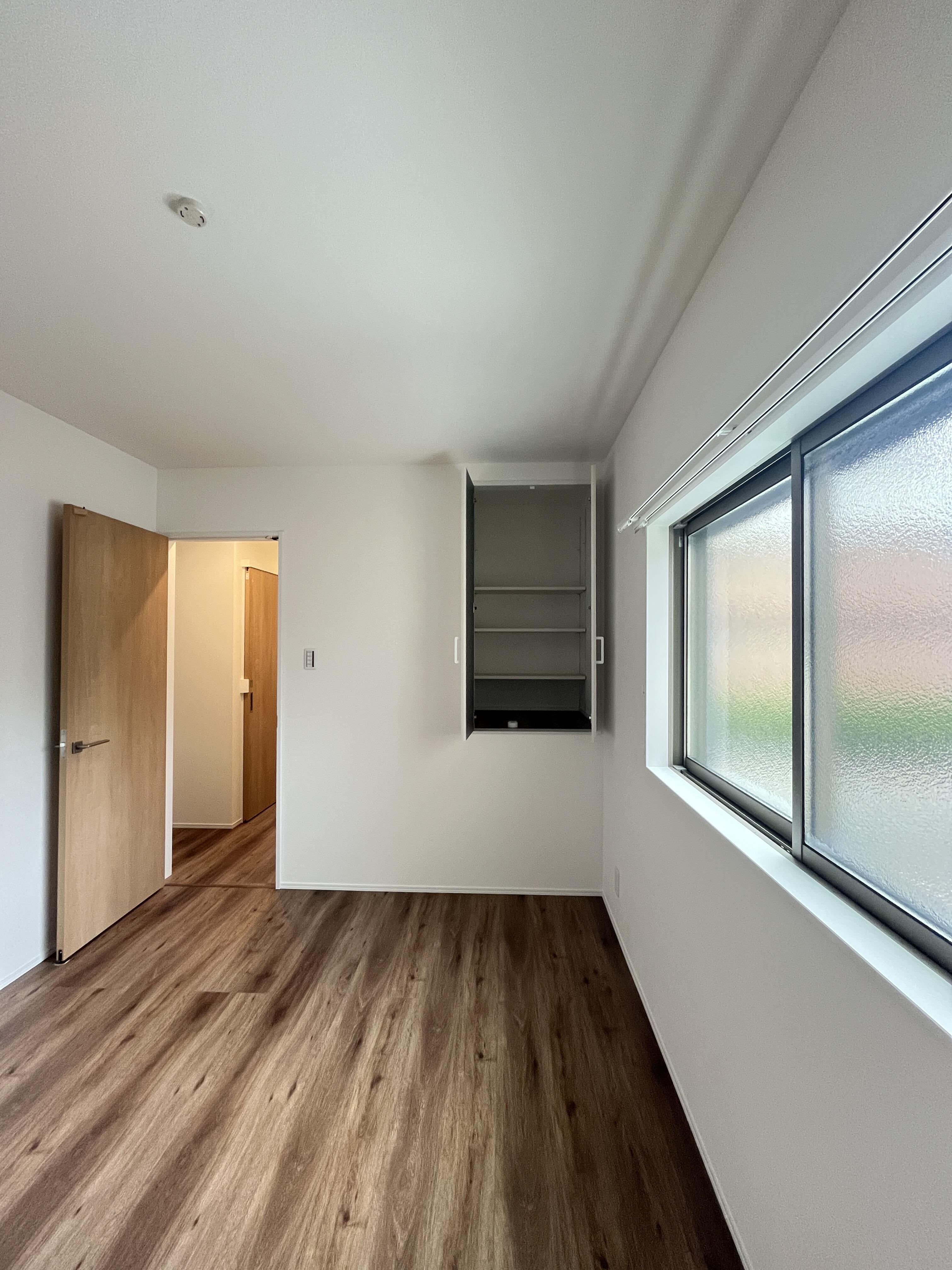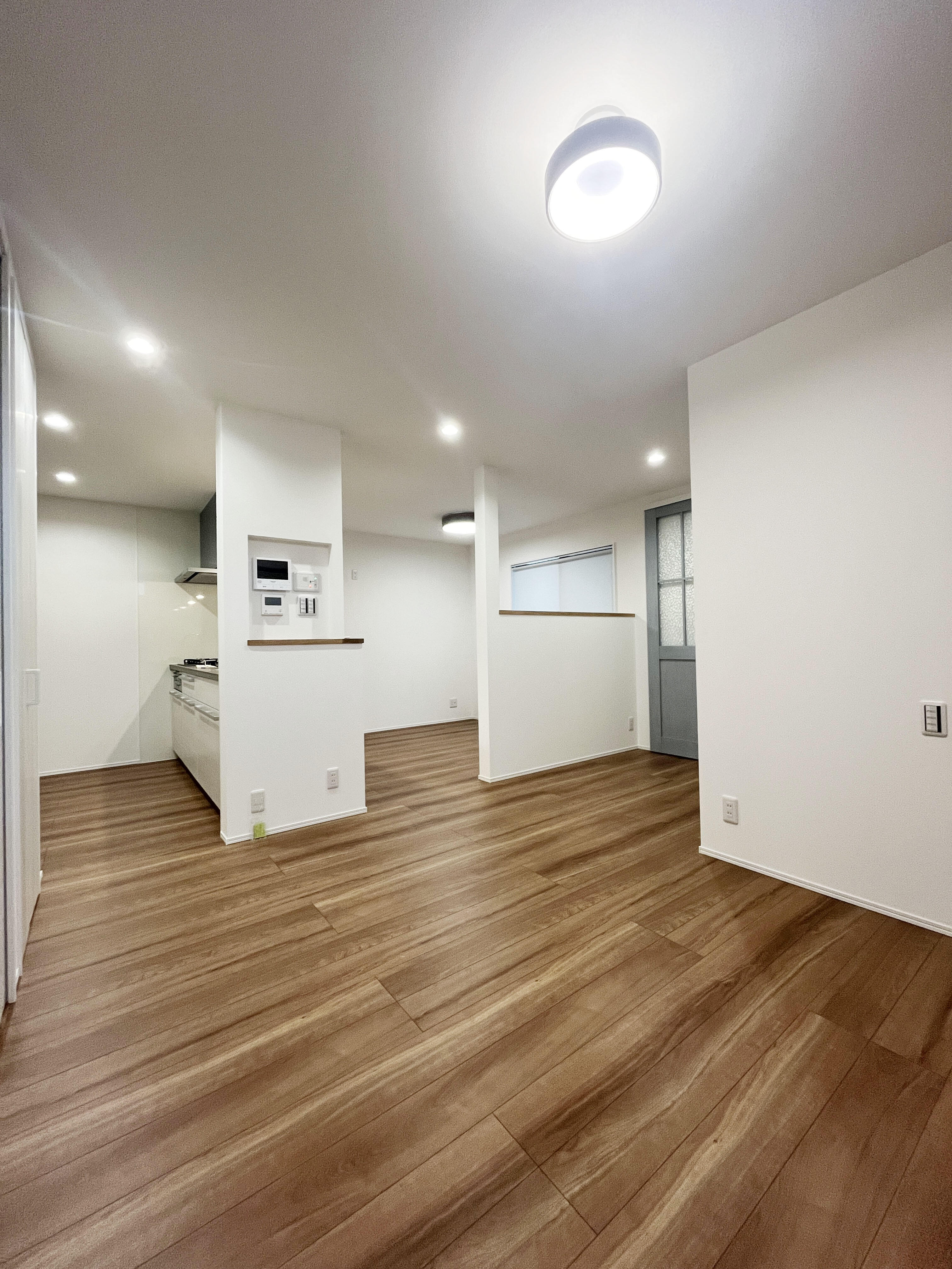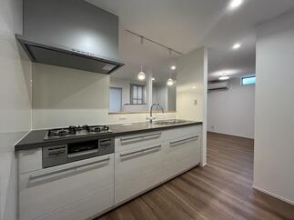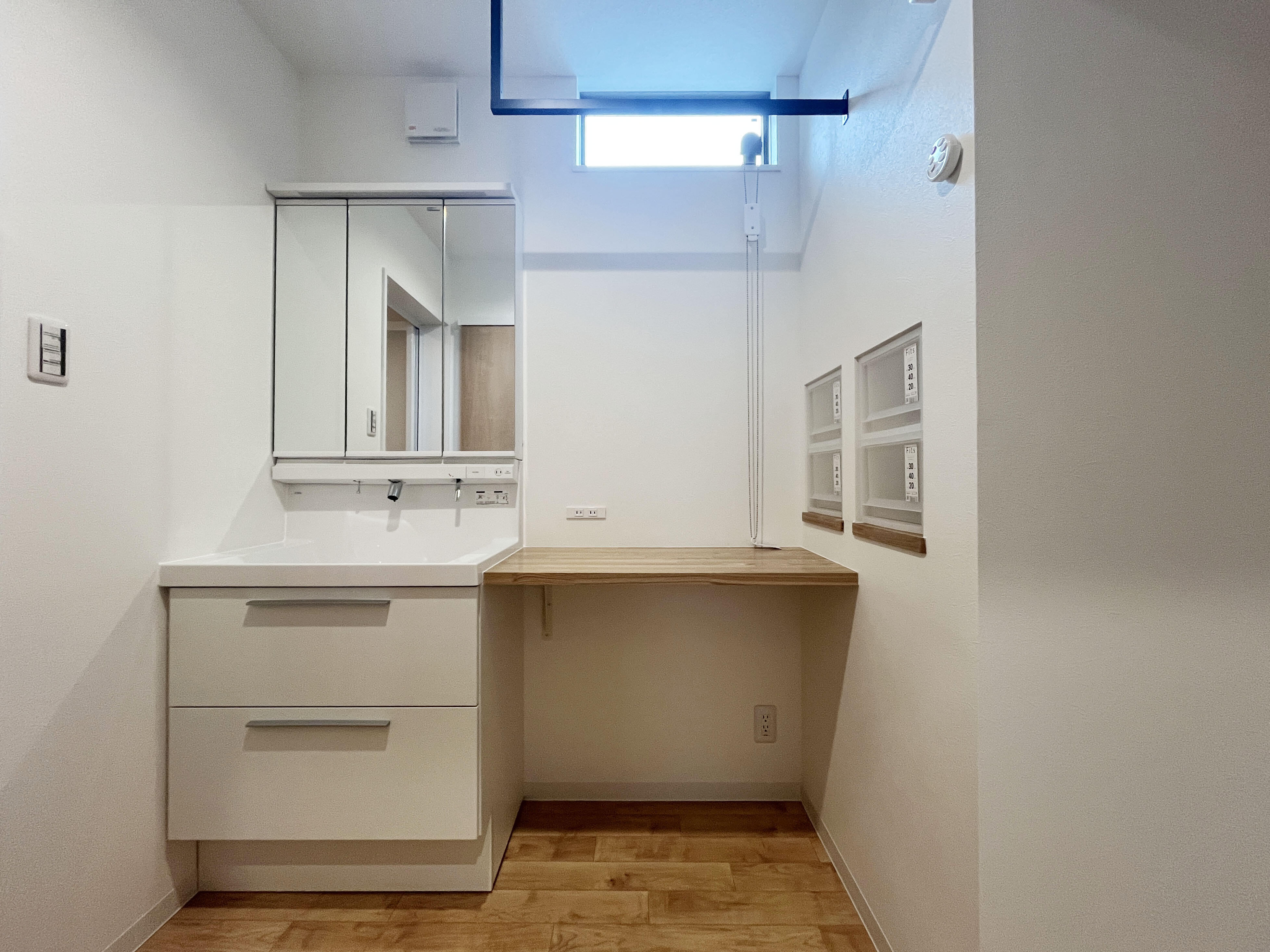 人が集まる機会も多く、「皆で食事できるスペースが欲しい」とのご要望から、リビング・ダイニングと8畳の和室を一つにし、対面キッチンのある広々としたスペースを確保しました。周りからの視線を気にせずゆっくりすごせるよう、高窓や縦長のすべり出し窓を採用し、視線を遮りつつ風は通るように配置しました。大きなダイニングテーブルも置けるので、ゆったり団らんの時間をすごせます。