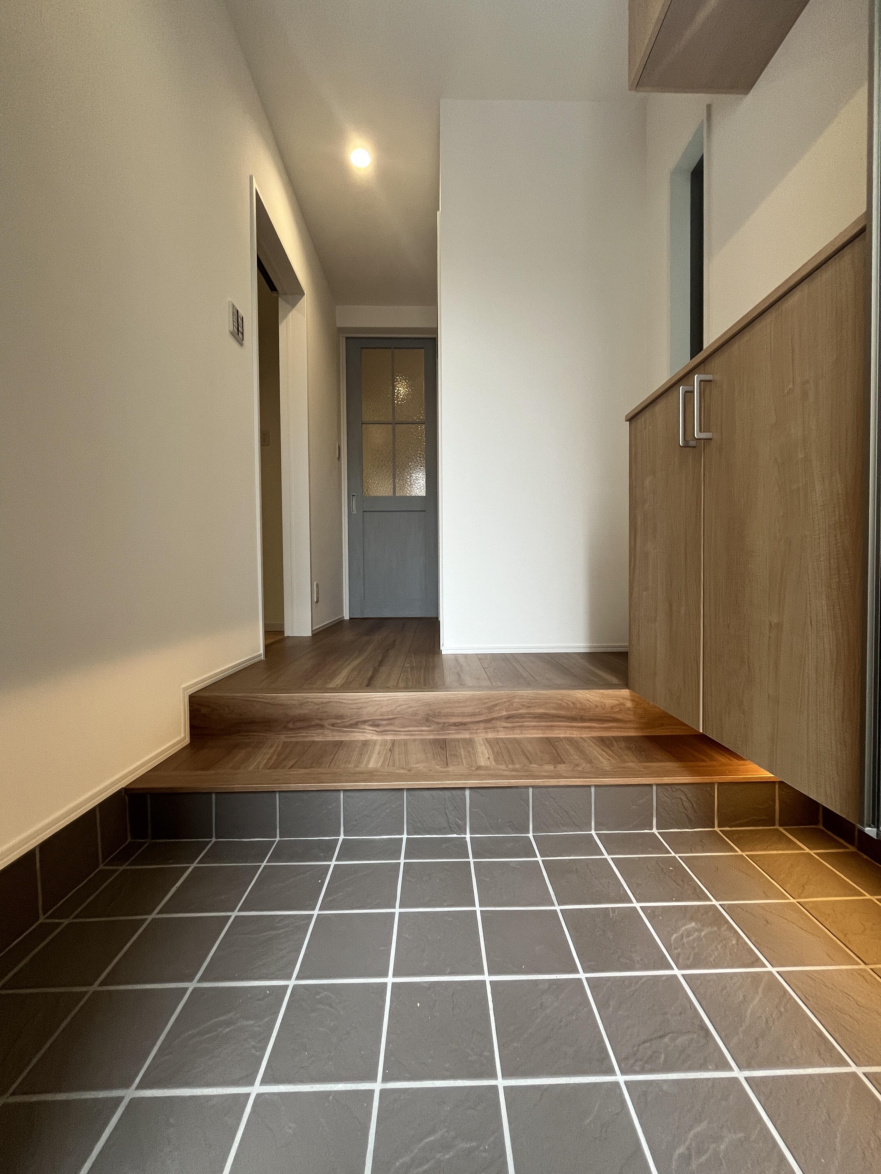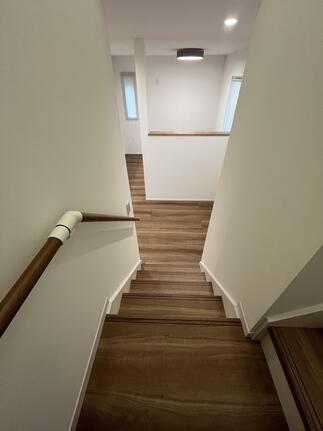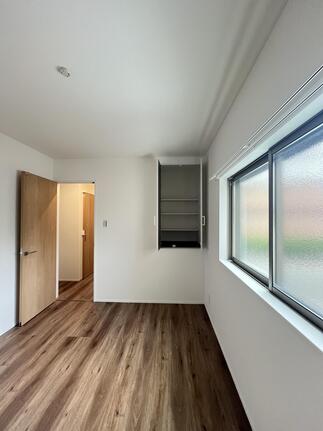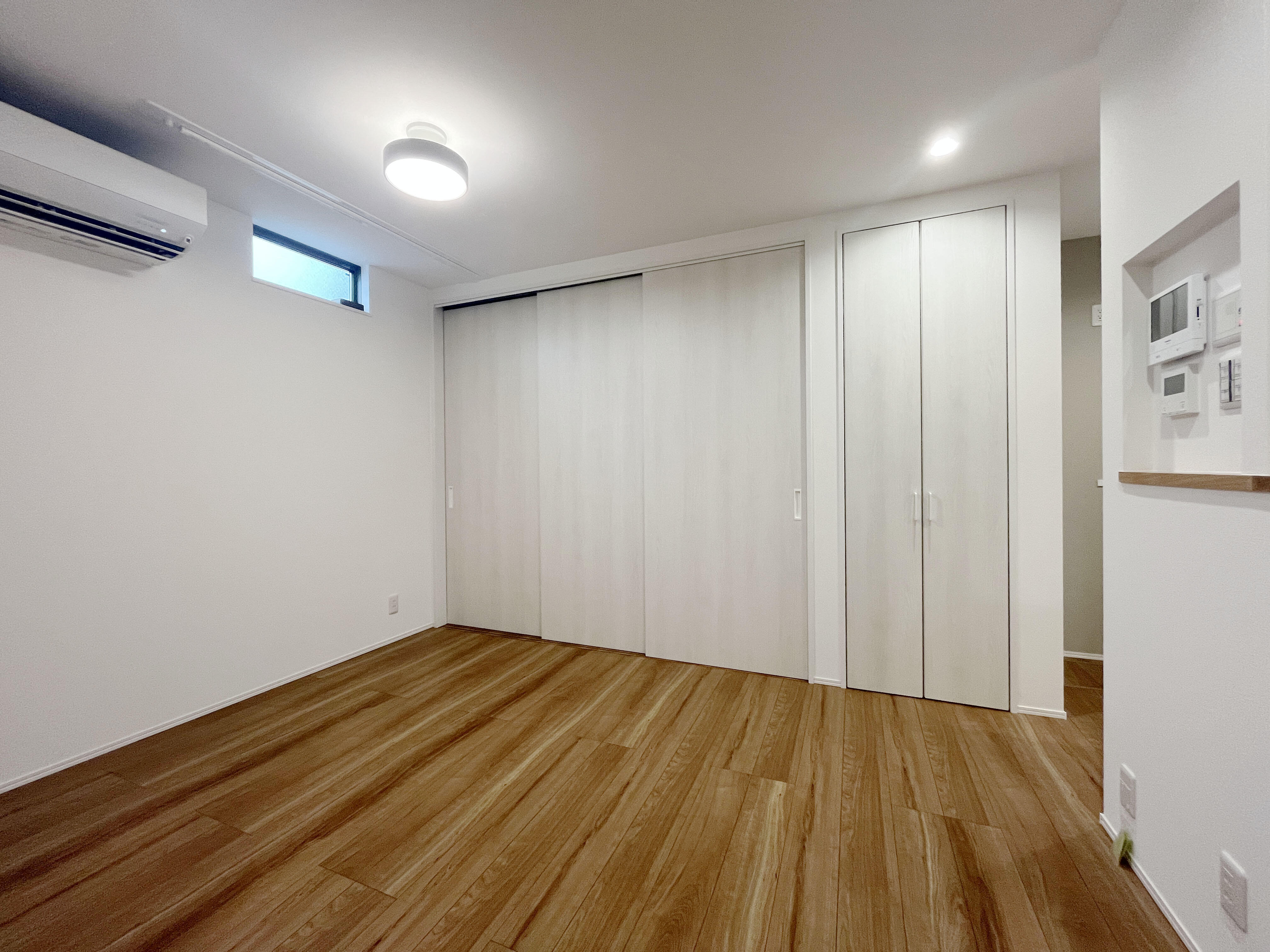 人が集まる機会も多く、「皆で食事できるスペースが欲しい」とのご要望から、リビング・ダイニングと8畳の和室を一つにし、対面キッチンのある広々としたスペースを確保しました。周りからの視線を気にせずゆっくりすごせるよう、高窓や縦長のすべり出し窓を採用し、視線を遮りつつ風は通るように配置しました。大きなダイニングテーブルも置けるので、ゆったり団らんの時間をすごせます。