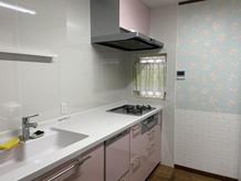 T邸 ピンクがポイント!お花柄のクロスでキュートなキッチン
