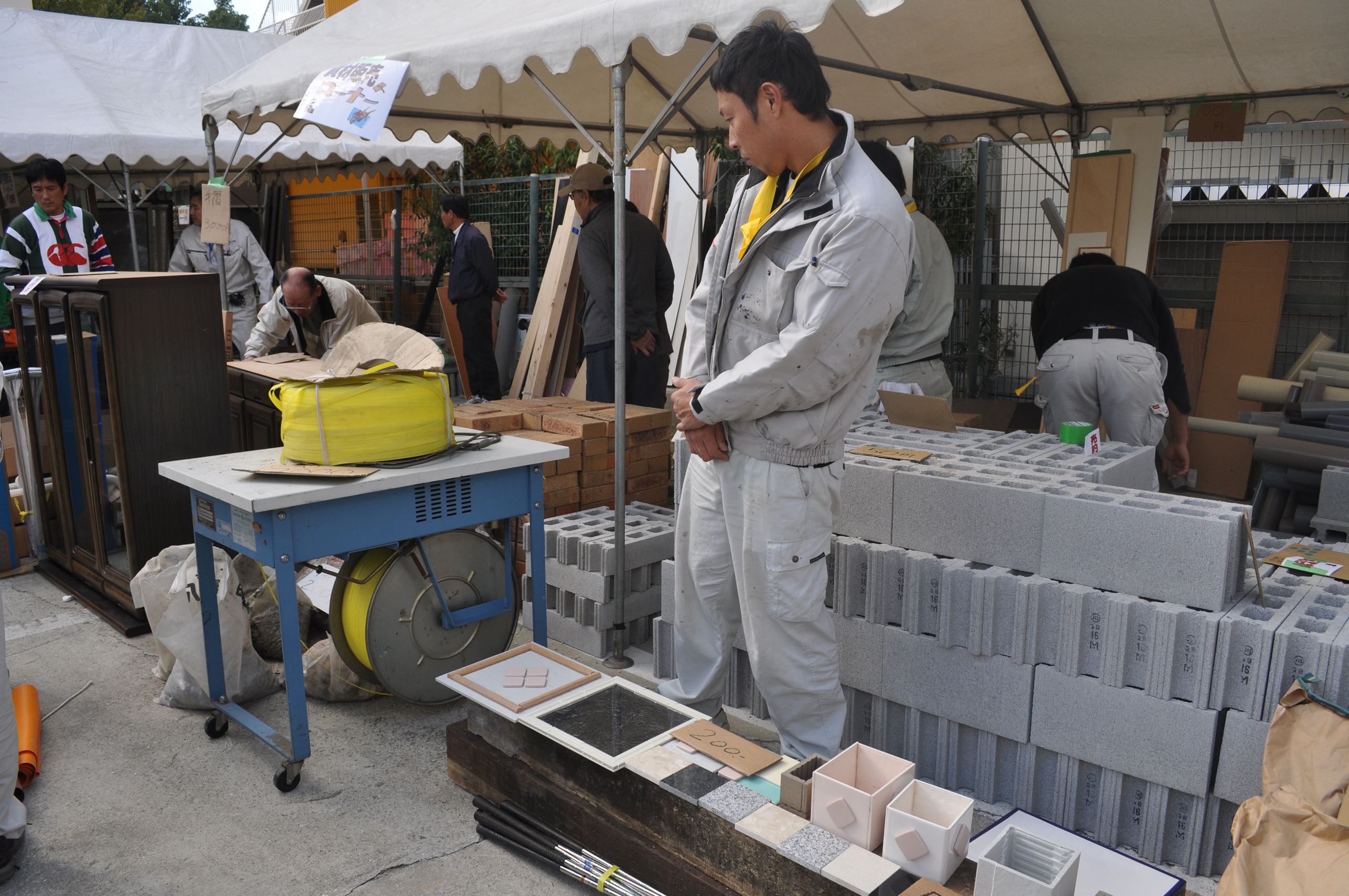 工務店ならではの建築資材、端材等の即売、包丁研ぎや網戸張替え、工作や屋台など、敷地いっぱいに使って、近隣の皆様や