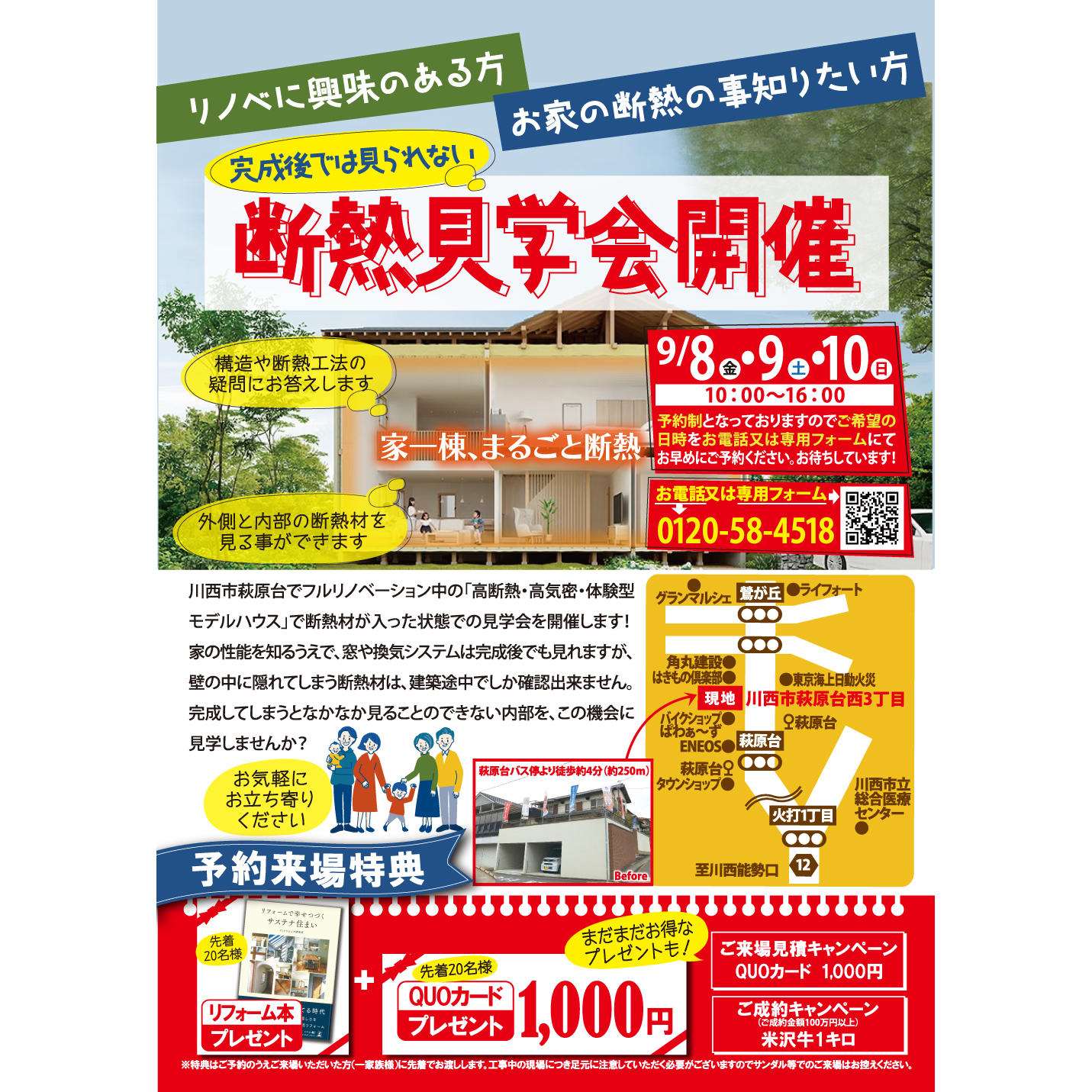 9月8・9・10日に川西市萩原台でフルリノベーション中の「高断熱・高気密・体験型モデルハウス」で断熱材が入った状態での見学会を開催します!