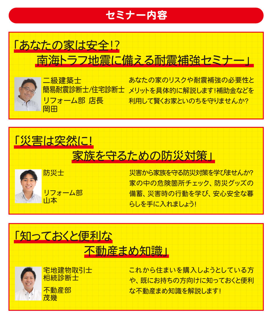 今回のセミナーでは「耐震診断士」「住宅診断士」「防災士」が住宅の構造や、