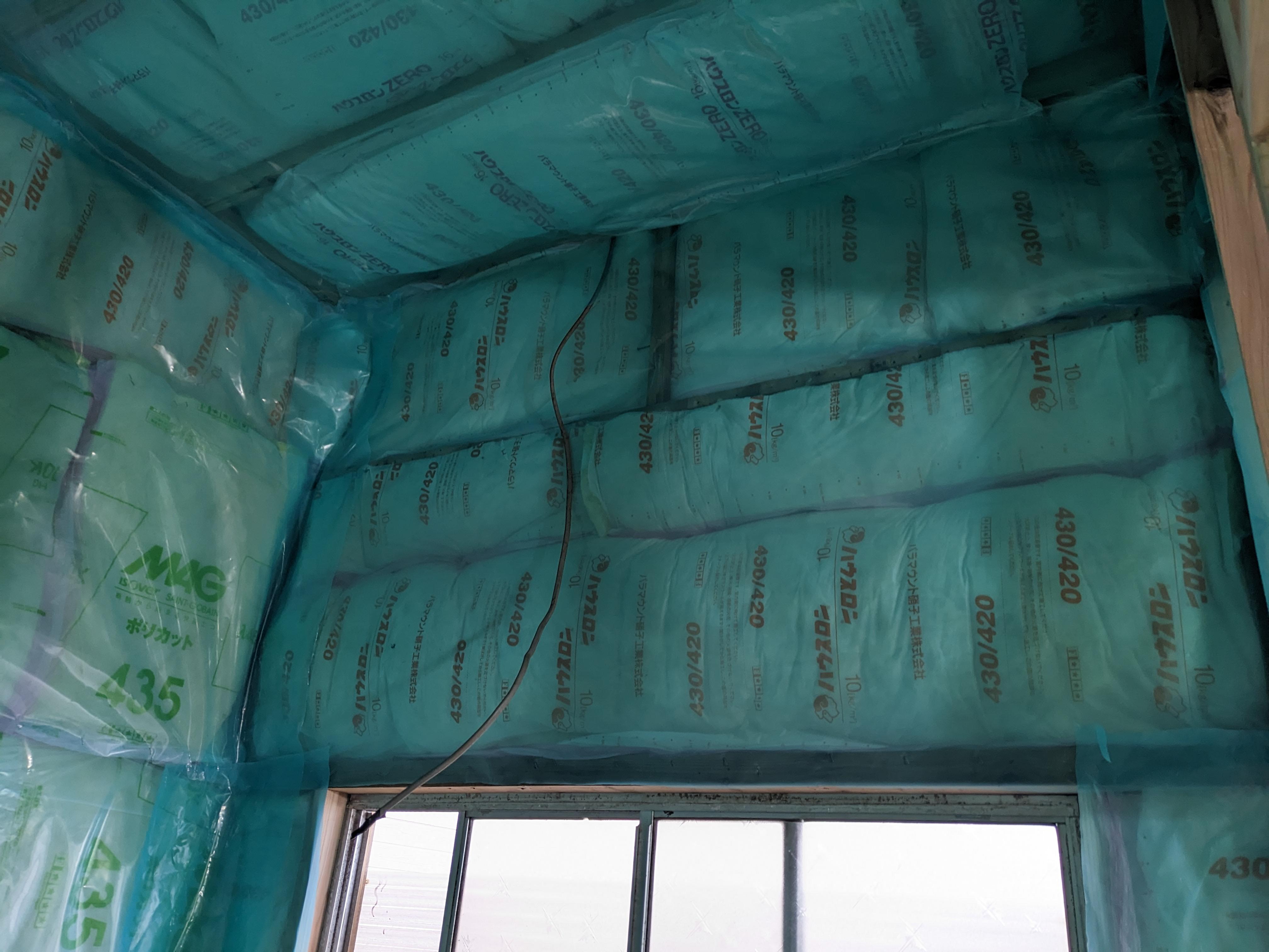 ユニットバス廻りは断熱材を充填し防湿シートを張りました。