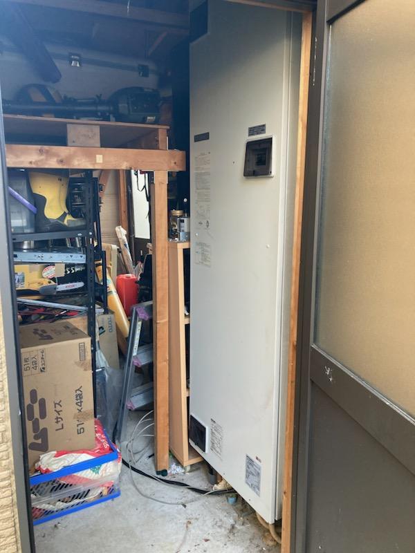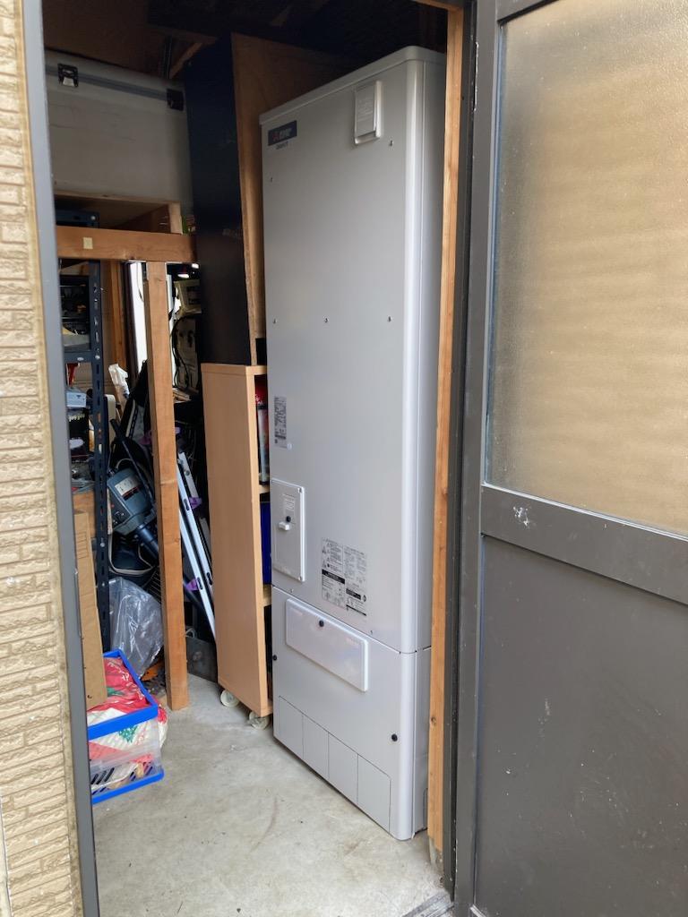 既存の電気温水器をエコキュートに交換、リビングの入口ドアが破損したため新しいドアに交換しました。