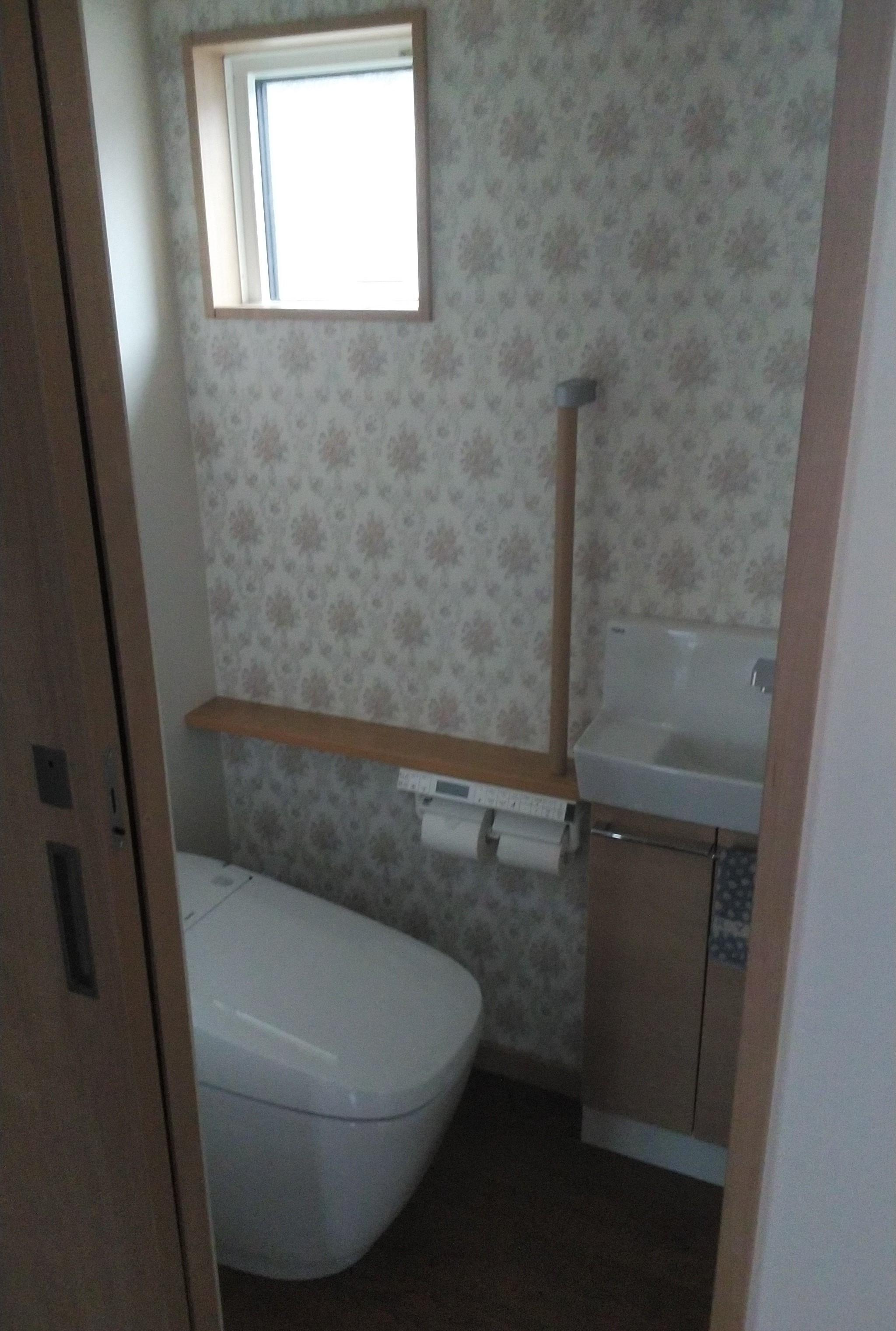 ホールの一角を利用してトイレを新設しました。 窓が欲しいのでトリプルガラスのハイブリッド窓(TW)を取付。 トイレはサティスGタイプをご採用です。 もう一つのトイレはアメージュに交換し、内窓インプラスを取付けました。