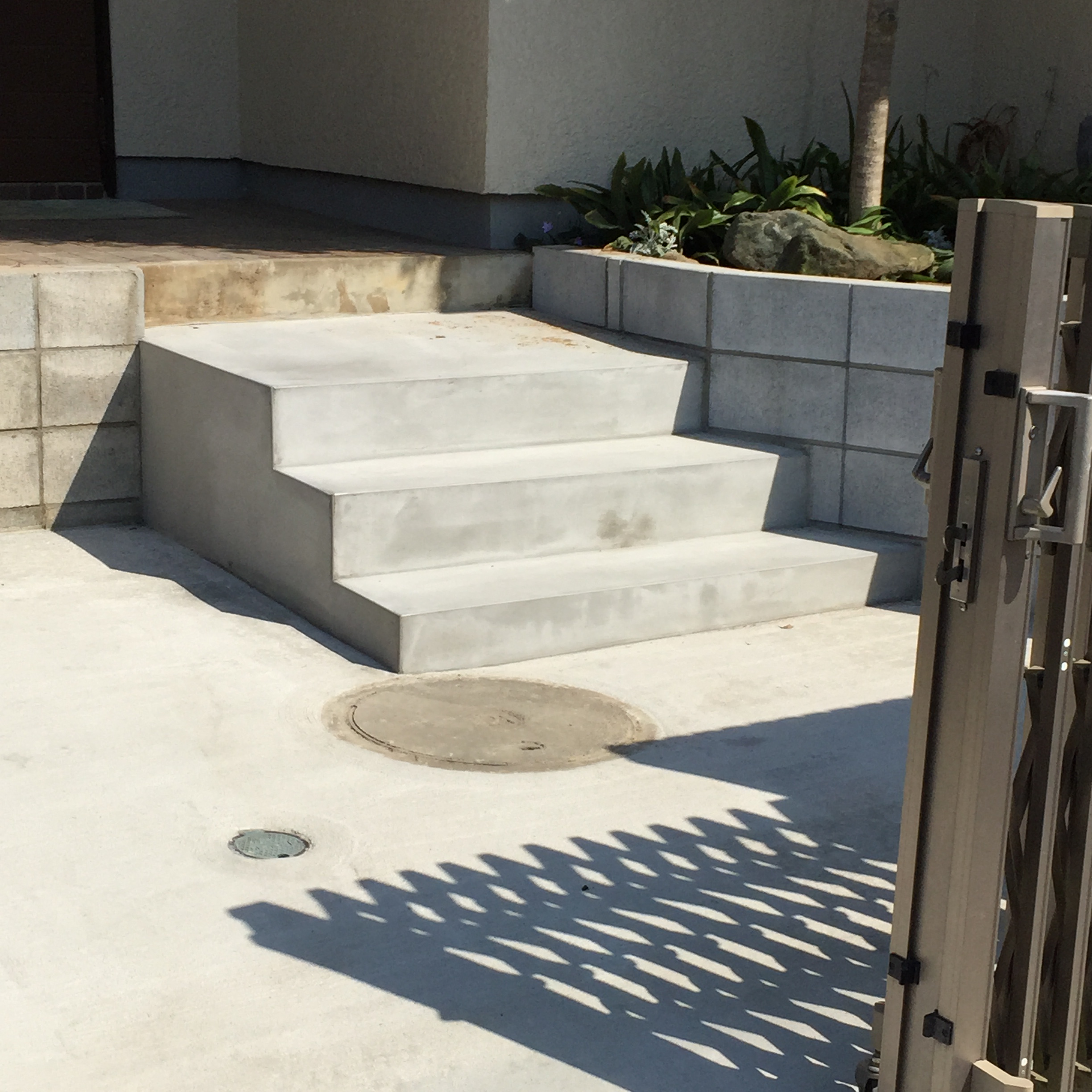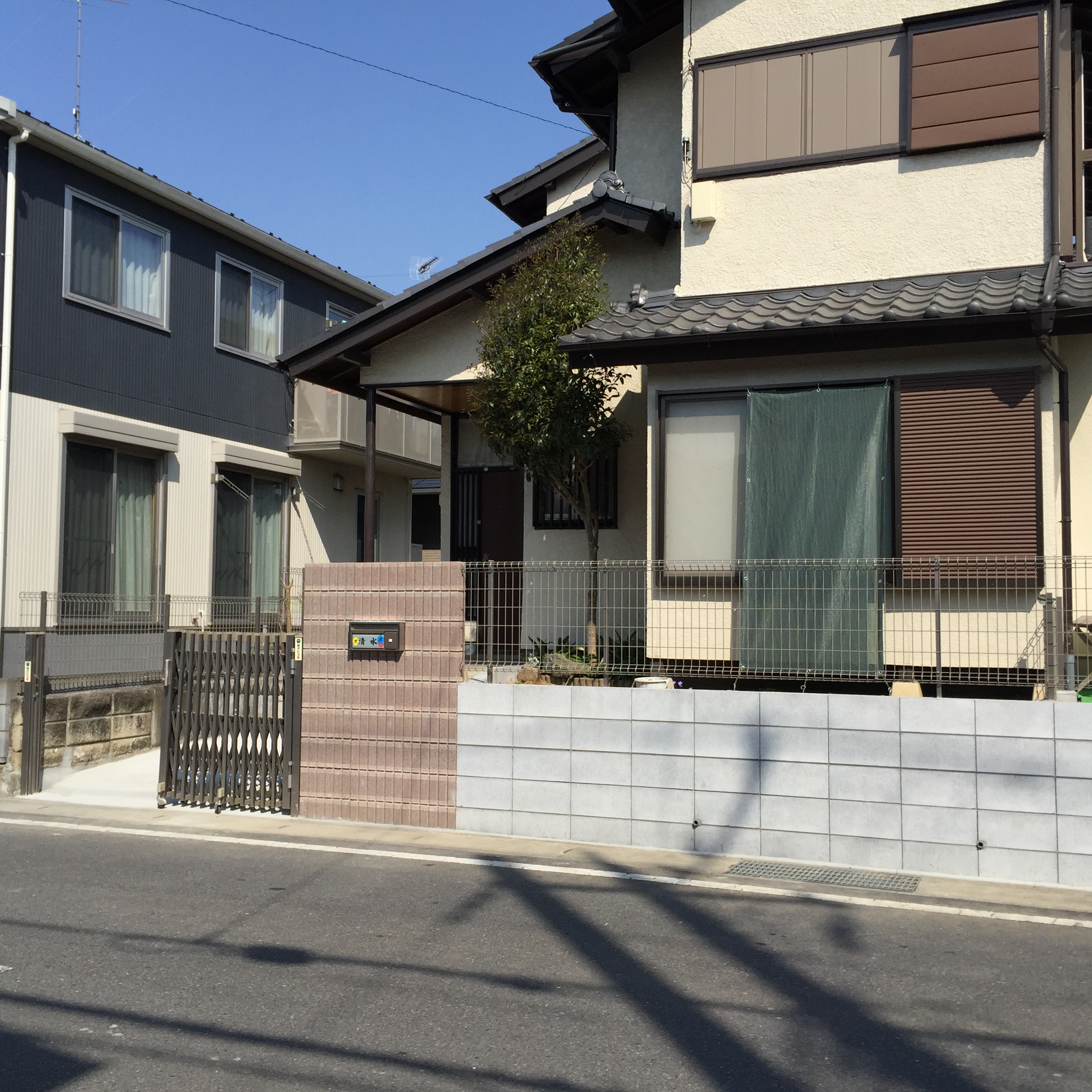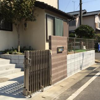 玄関まわりと境界ブロック改修工事の現場です。 化粧ブロックを積み上げ、玄関入口の雰囲気を変えました。 普段、ペットと一緒に住んでいるので、通常よりも高く積み上げたのと、 面周りをドッグランができるように植木を伐採し、広々スペースを 造りました。周りが明るくなりペット達の喜ぶ様子が目に浮かびます。