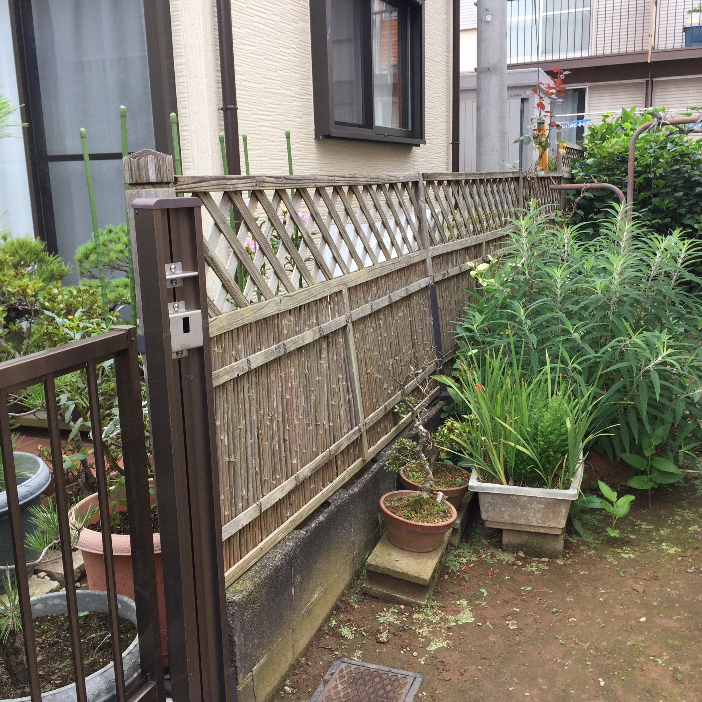 定期訪問の際に、ご主人からお手製の自慢のフェンスが随分古くなってきたので、この際今風のアルミ製フェンスの変えたいと相談されました。 以前、増築したサッシの色と合わせて、一体感をもたせてみました。