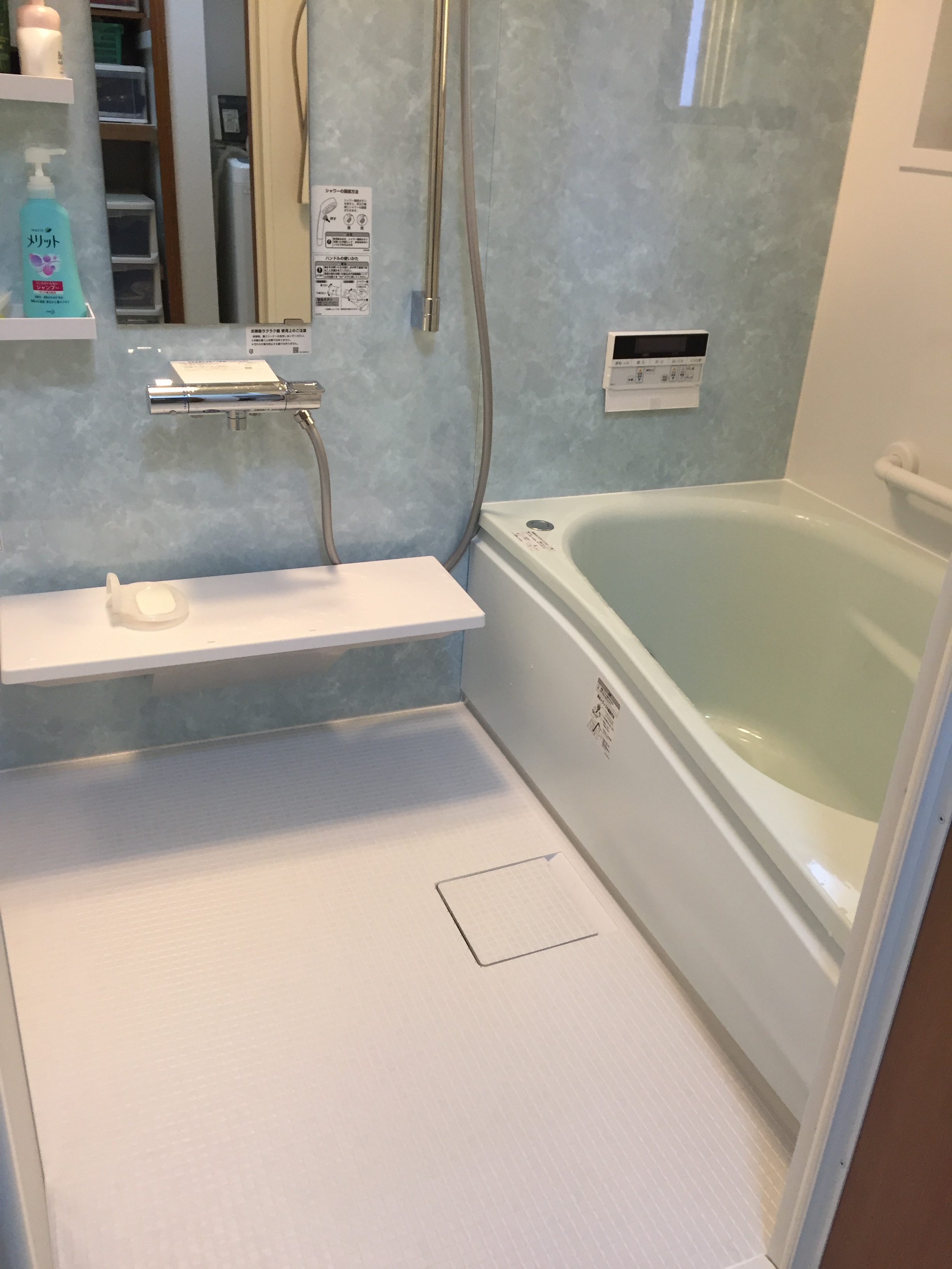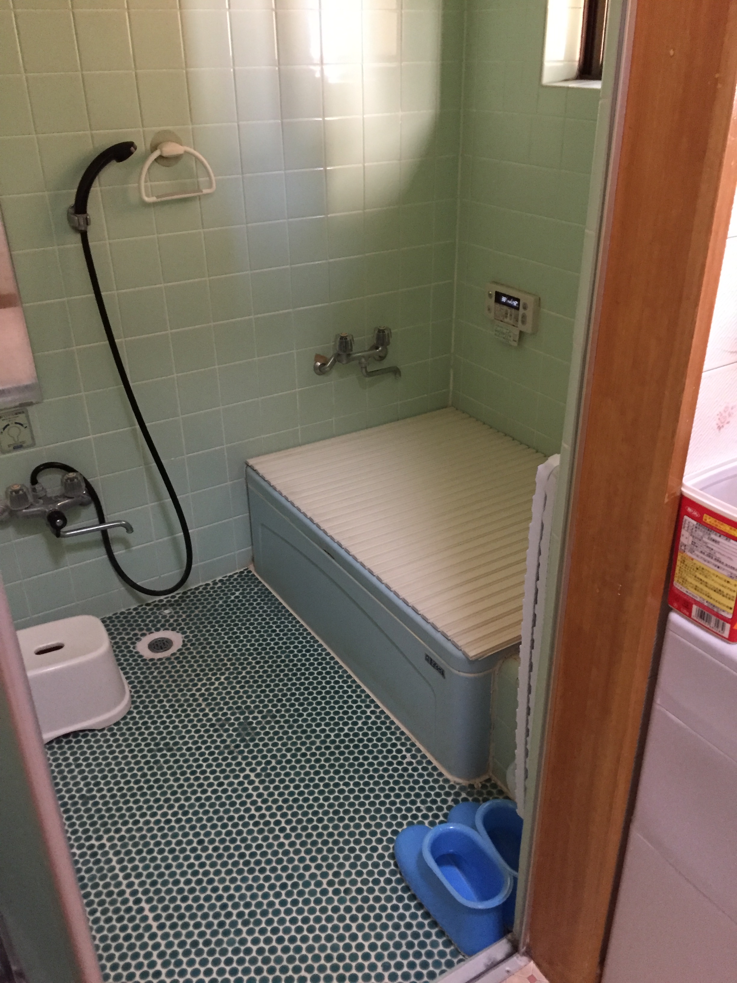 タイル貼りの浴室から快適ユニットバスルームにリフォームした現場です。