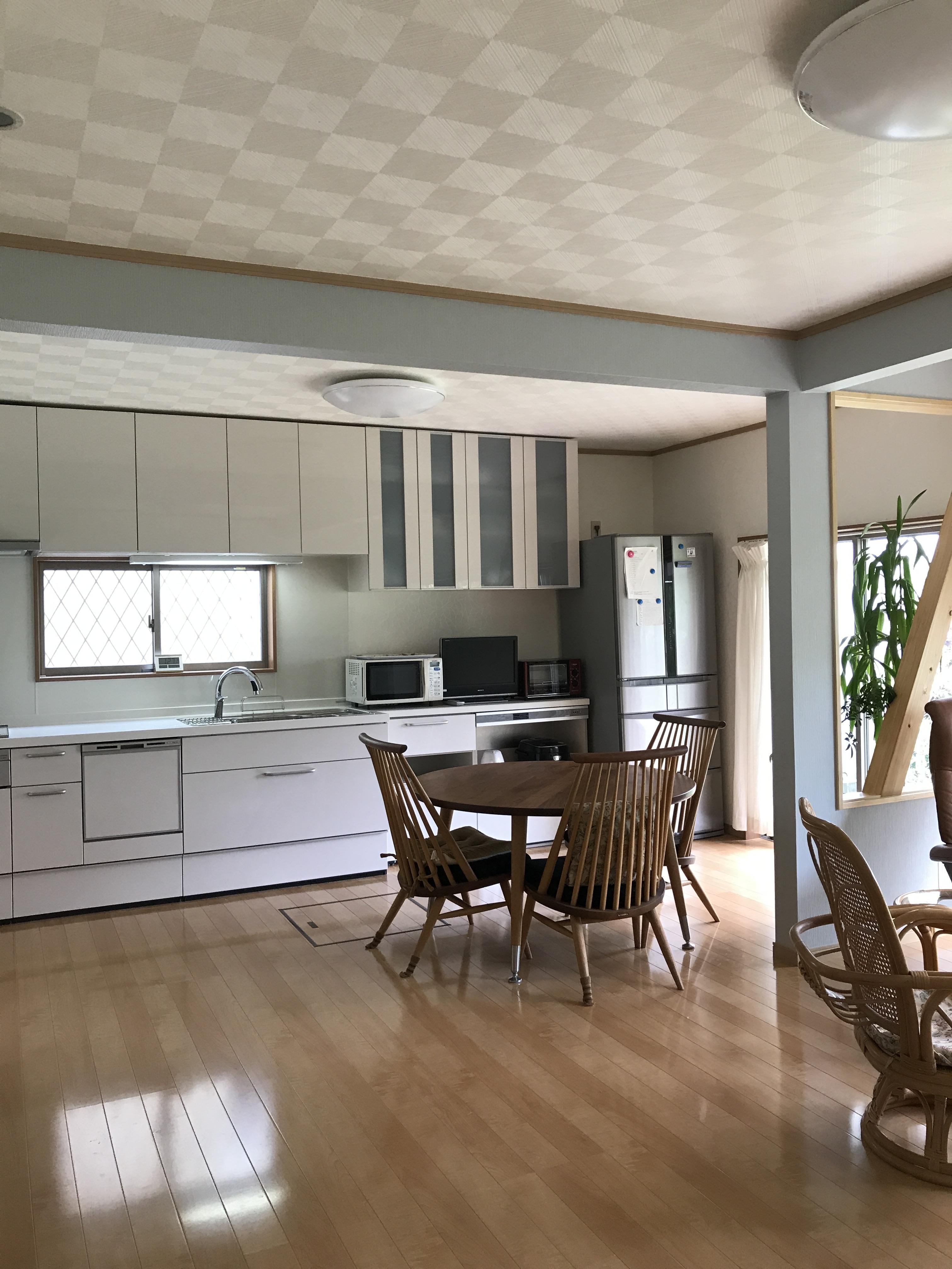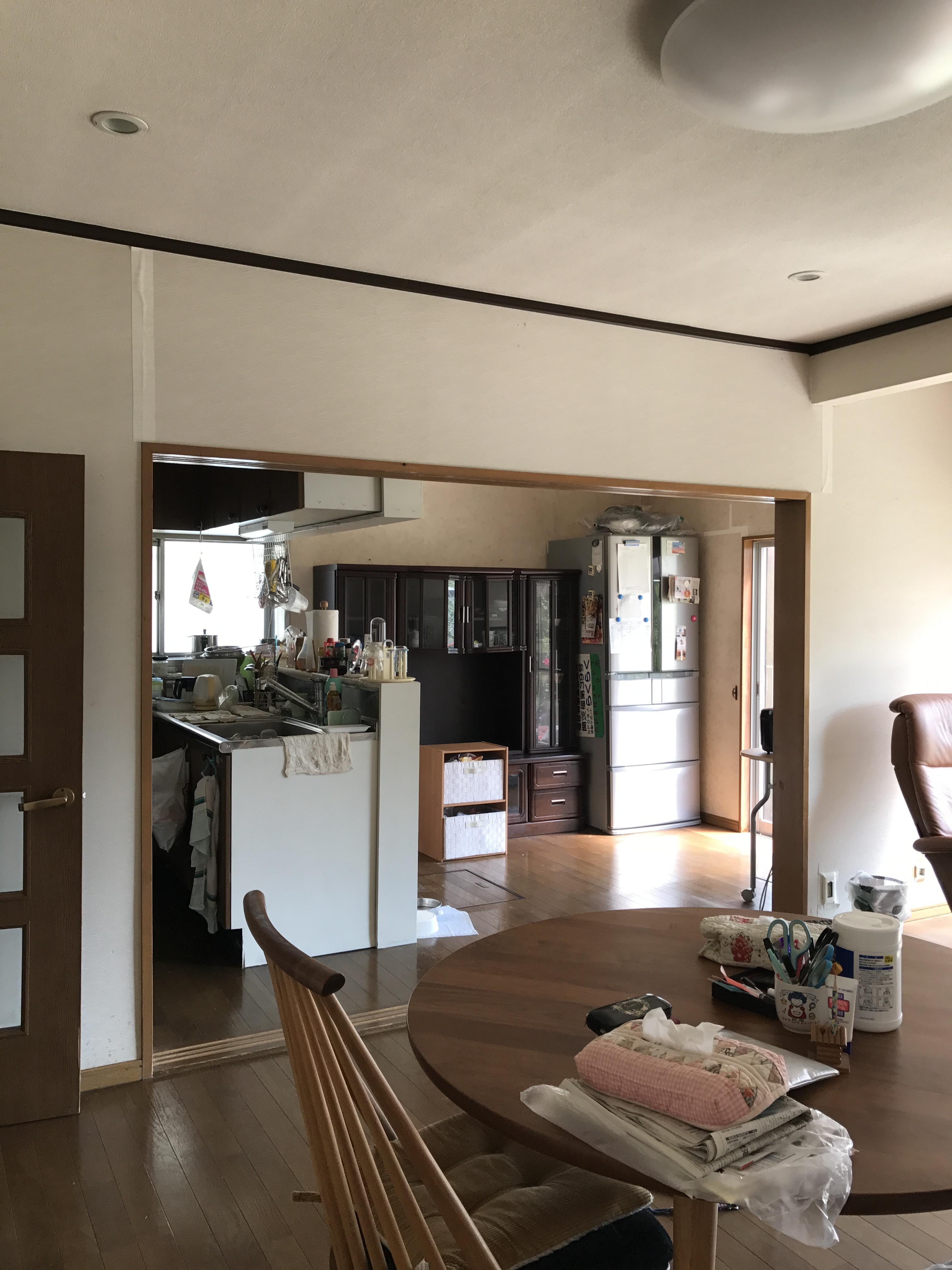 1年位前から相談があり、延び延びになっていましたがご主人の仕事も一段落し、仕事の打合せも兼ねてキッチン、リビングをオープンにとの提案があり今回の工事となりました。 キッチンなどこだわりがあり、ショールームへドも何度も足を運ばれ決定となりました。