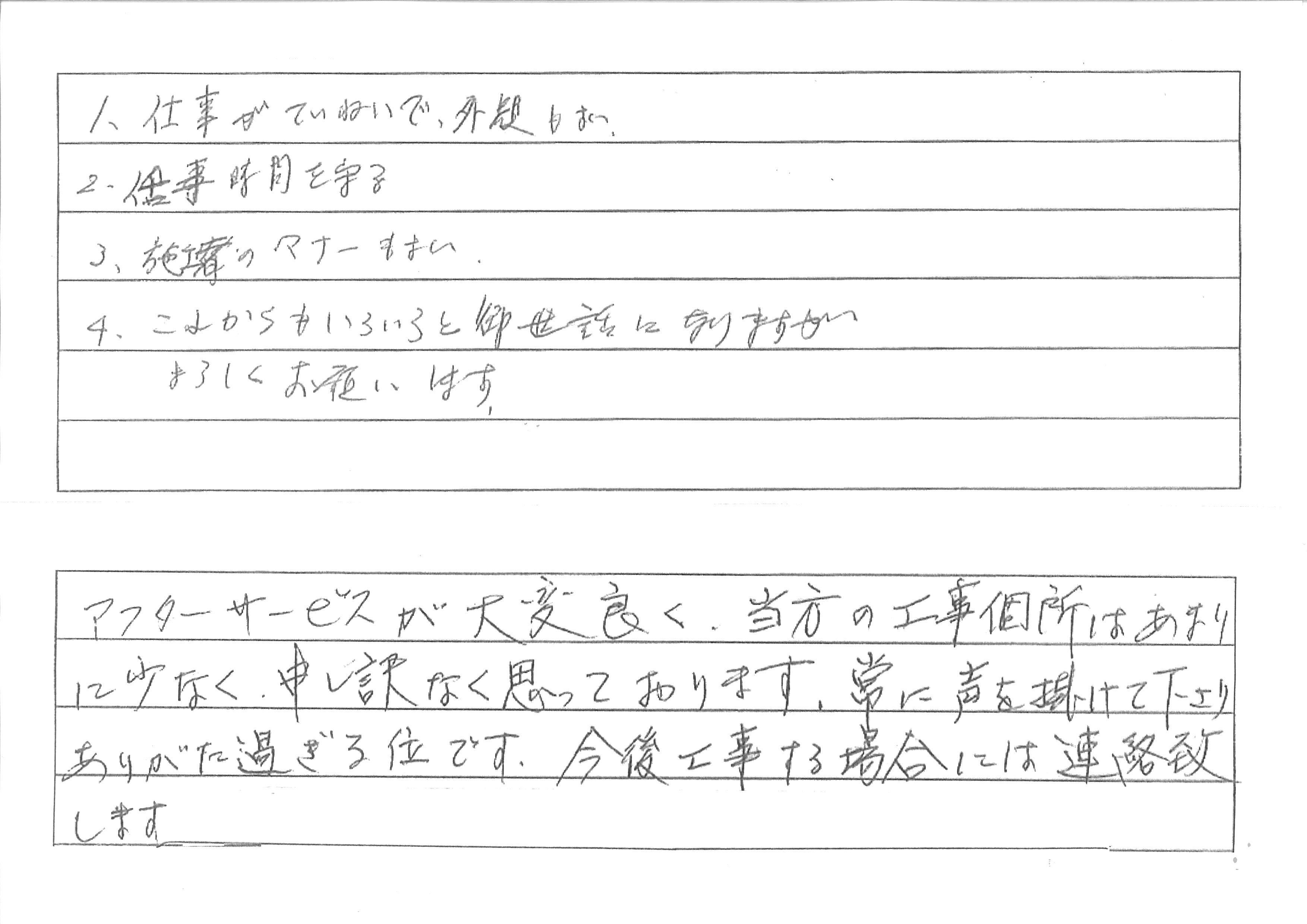 お客様よりうれしいお言葉をいただきました。より一層のご満足をいただけるようなリフォームを心掛けていきたいと思います。