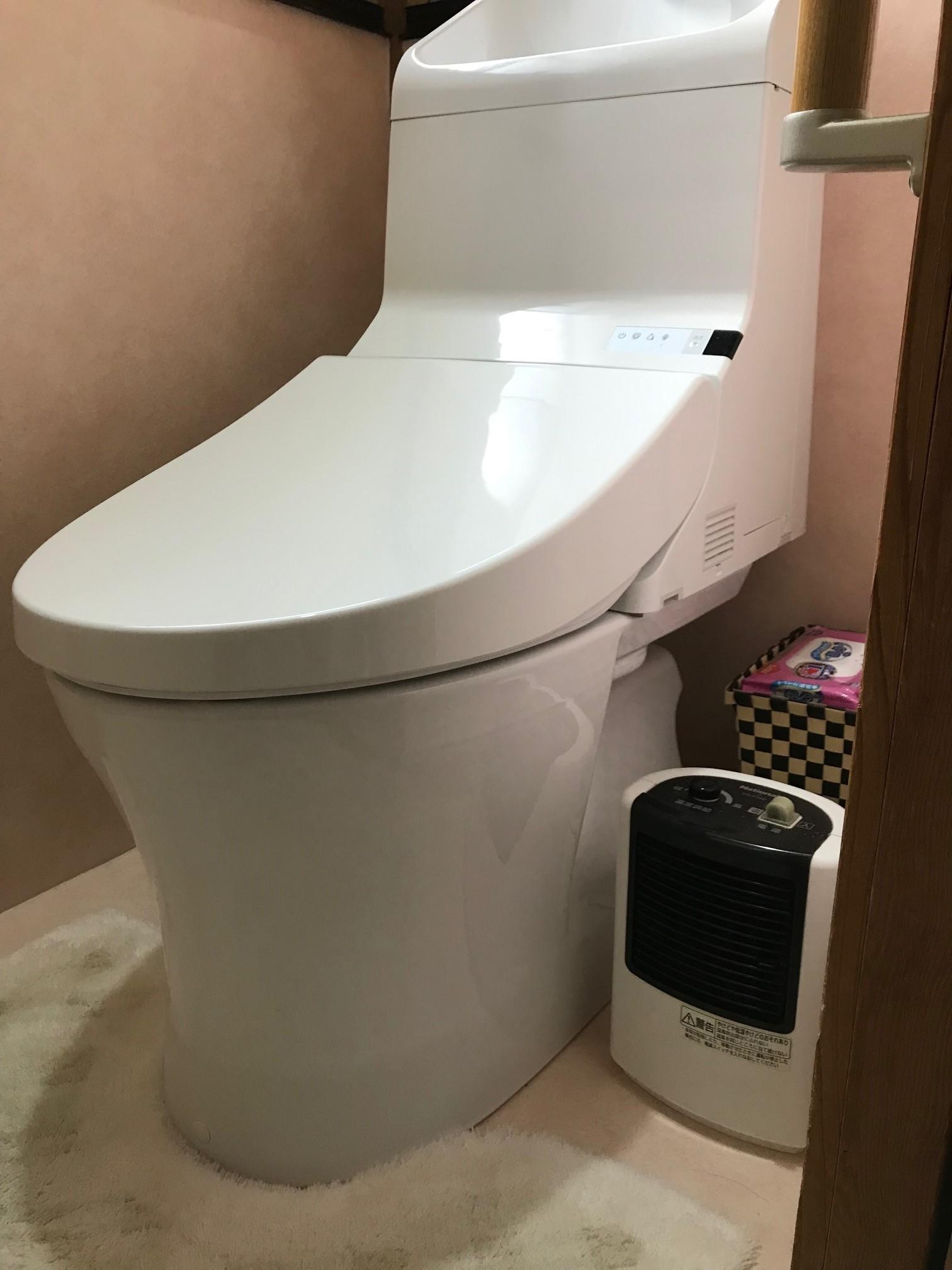 ウォシュレット付トイレに交換し、腰壁・床等の張替をしました。 温かみのある淡いピンクの色をを選びました。