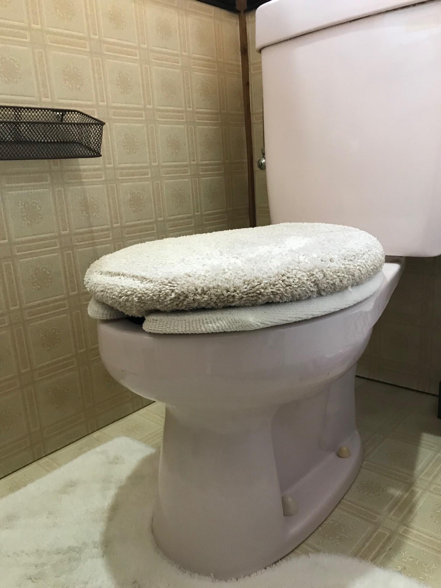 ウォシュレット付トイレに交換し、腰壁・床・天井のクロス・クッションフロアの張替をしました