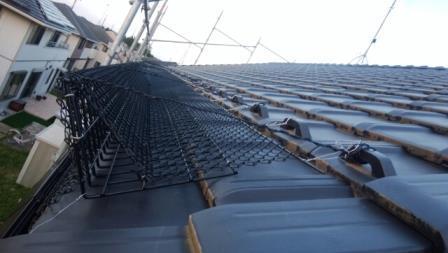 こちらは”ゆきもちくん”という商品で落雪を未然に防ぐものです。通常の雪止めの瓦では滑り落ちてきますが、こちらを取り付けることにより、落雪を軽減できます。どんな屋根にも設置できます。安全を考えて早目の工事をしました。