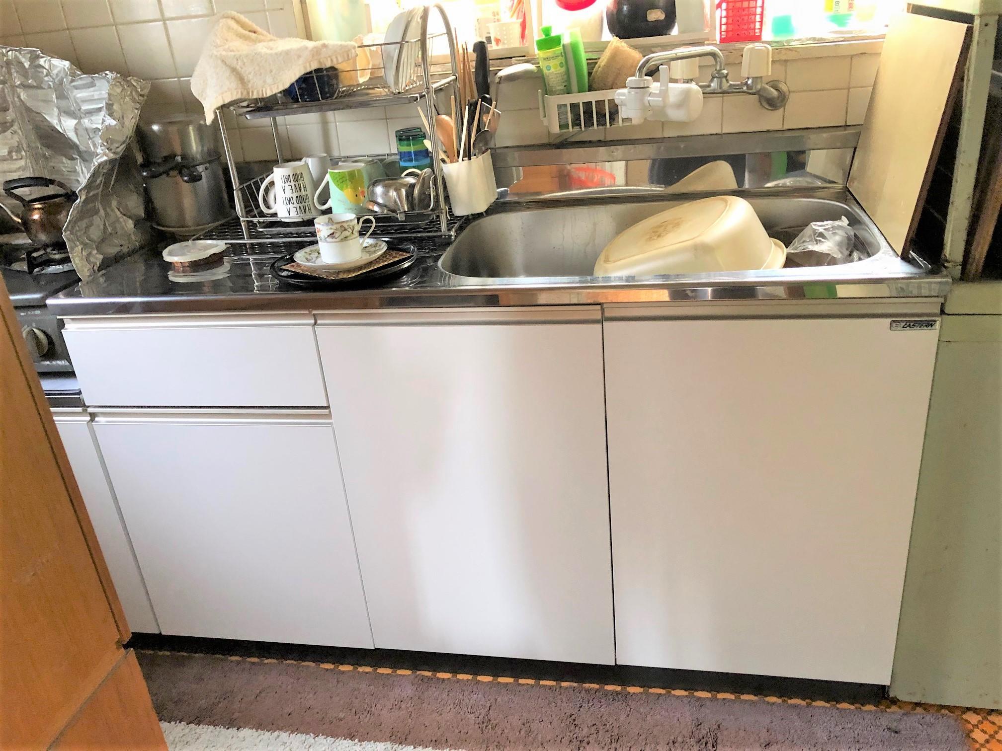 50年前に取り付けたキッチンでしたが、流し台から水漏れしてしまい交換になりました。 きれいになったと大変喜ばれていました。