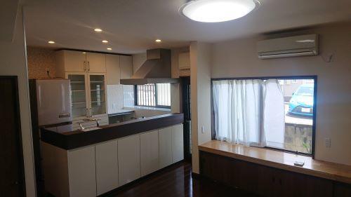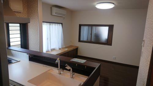 施工後 居間と台所の壁・柱を取りの除き一部屋のフローリングの部屋へリフォーム