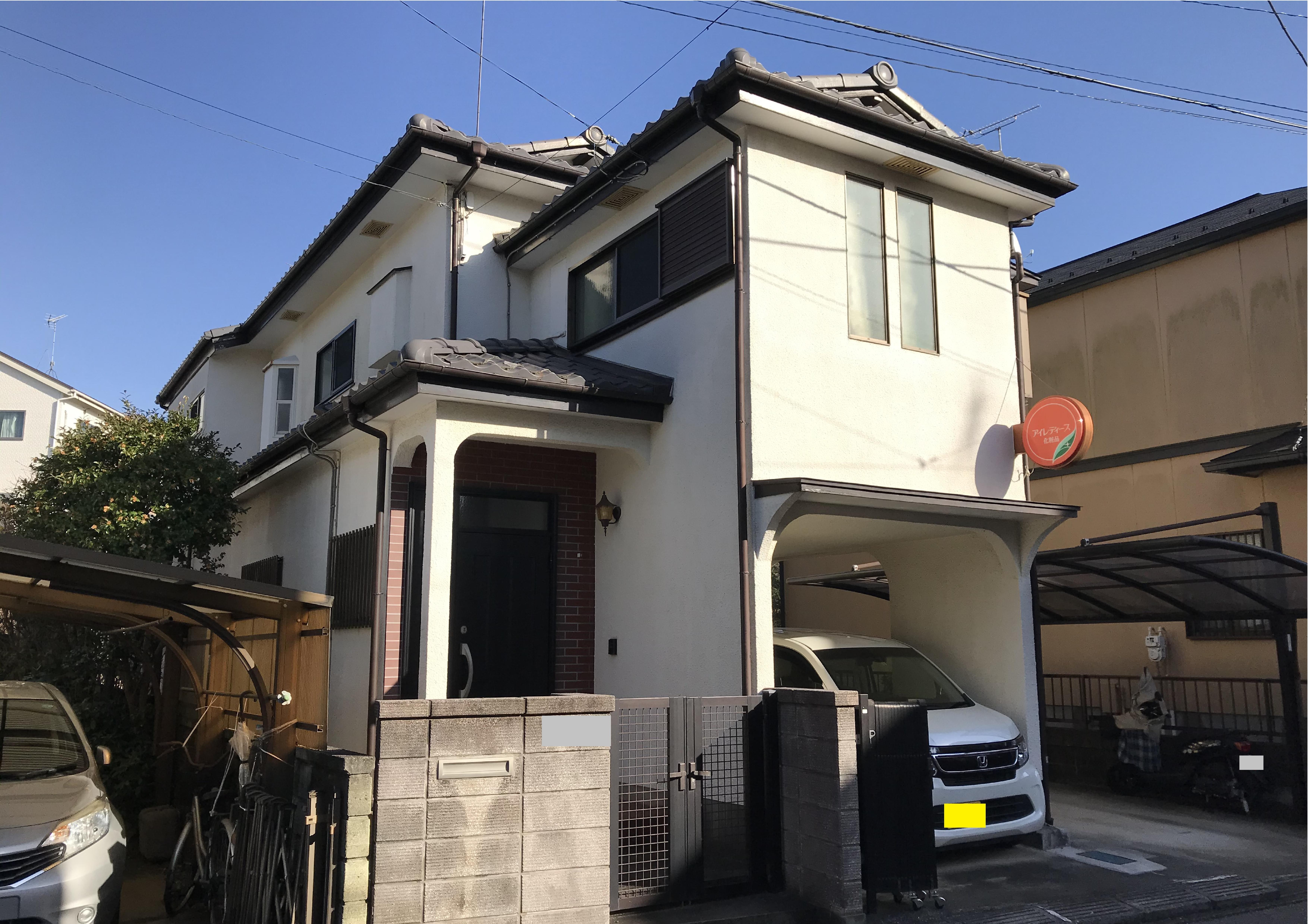 何度もリピートいただいているOBのお施主様宅です。 外壁にクラックが見つかったので、全体的に見てほしいとのこと。 屋根も傷んできているので、一緒に直したいとお電話いただきました。