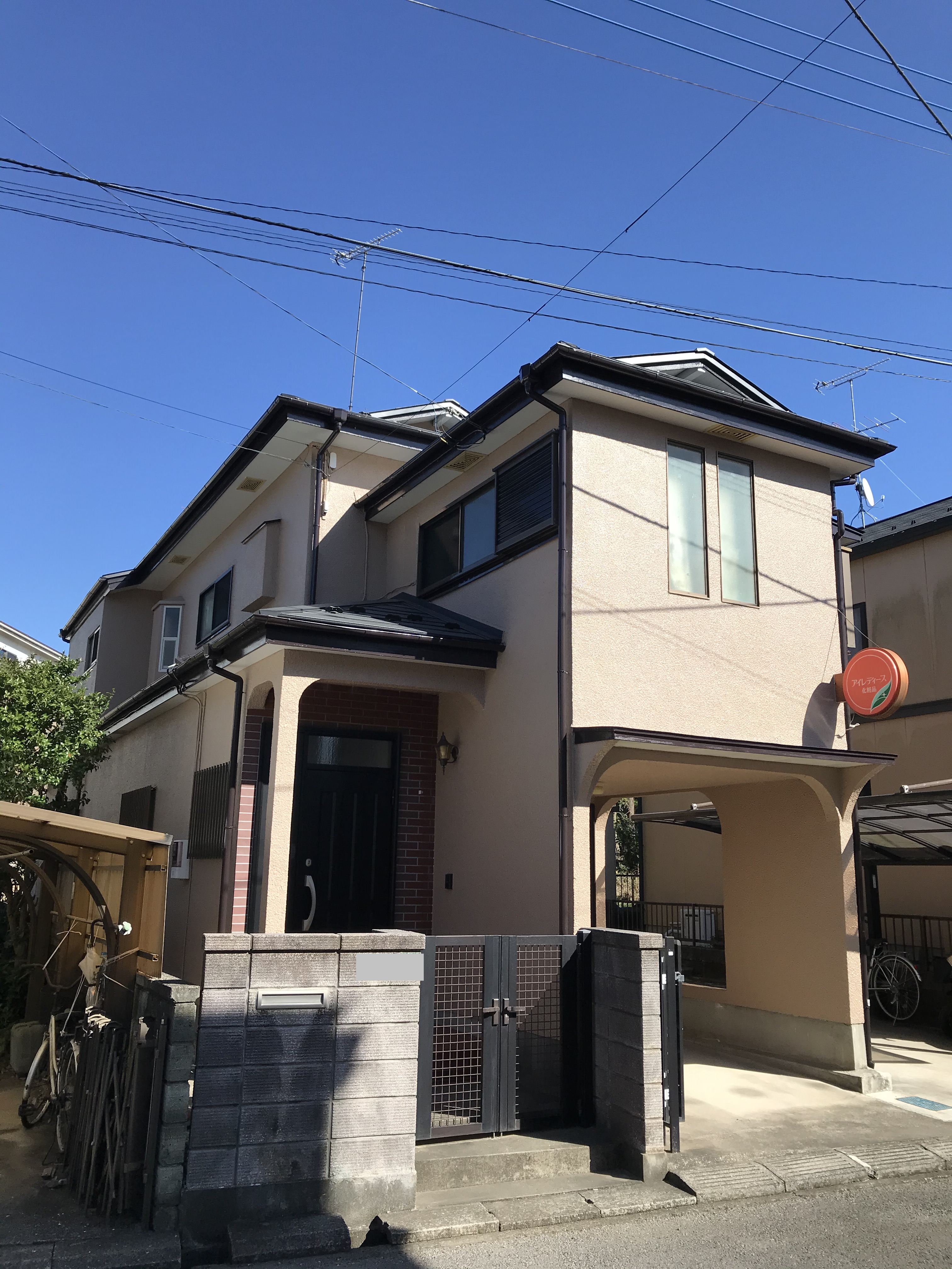 外壁の色は、白→落ち着きのあるベージュ色 屋根はガルバニウムで張替え
