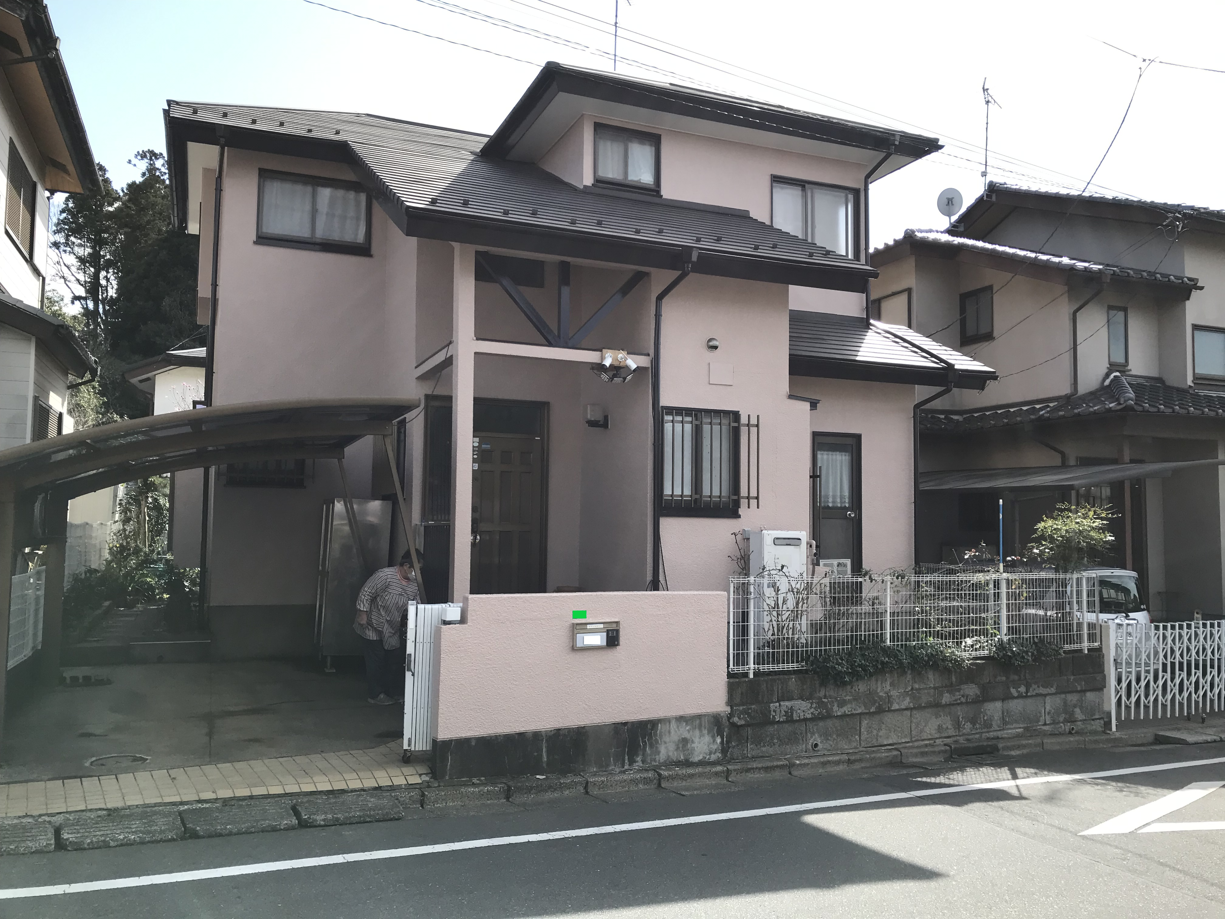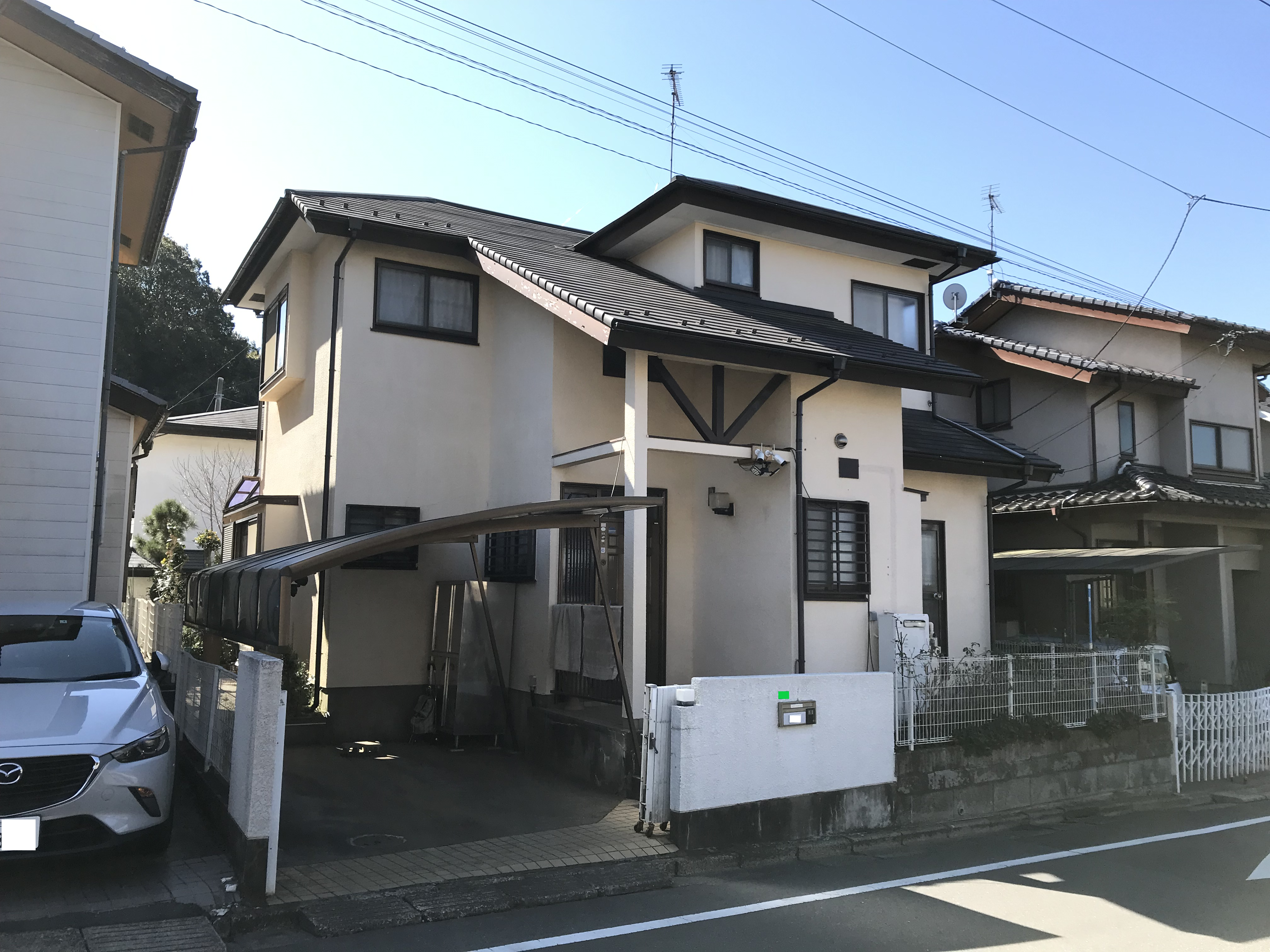 <外部改修工事> 外部塗装 高圧洗浄後、ソフトサーフ下塗 クリーンマイルド中塗・上塗 外部改修 軒天張替え工事 面格子交換工事