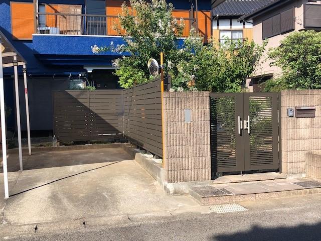 LIXIL目隠しフェンス道路面と敷地内に設置 LIXIL開き門扉交換