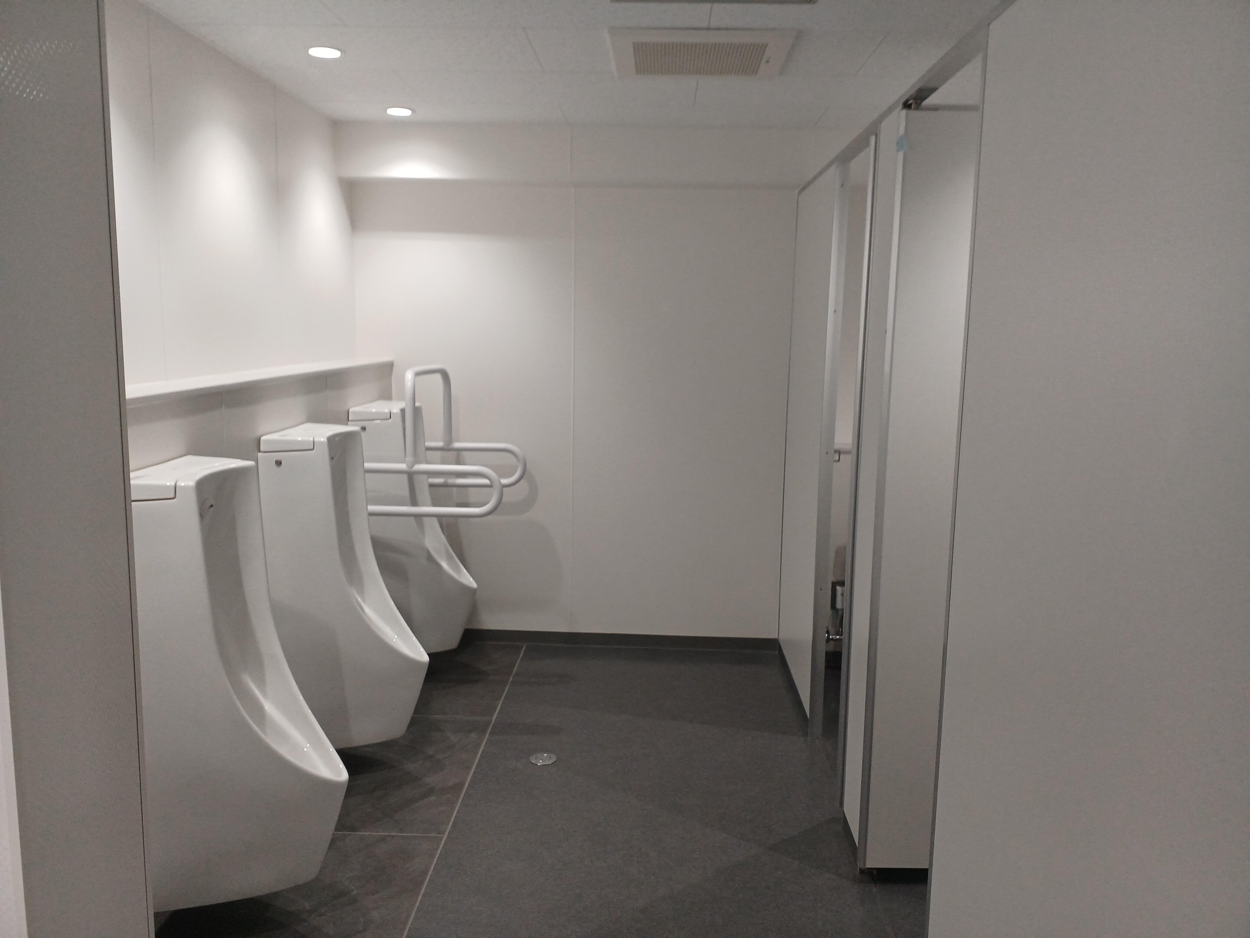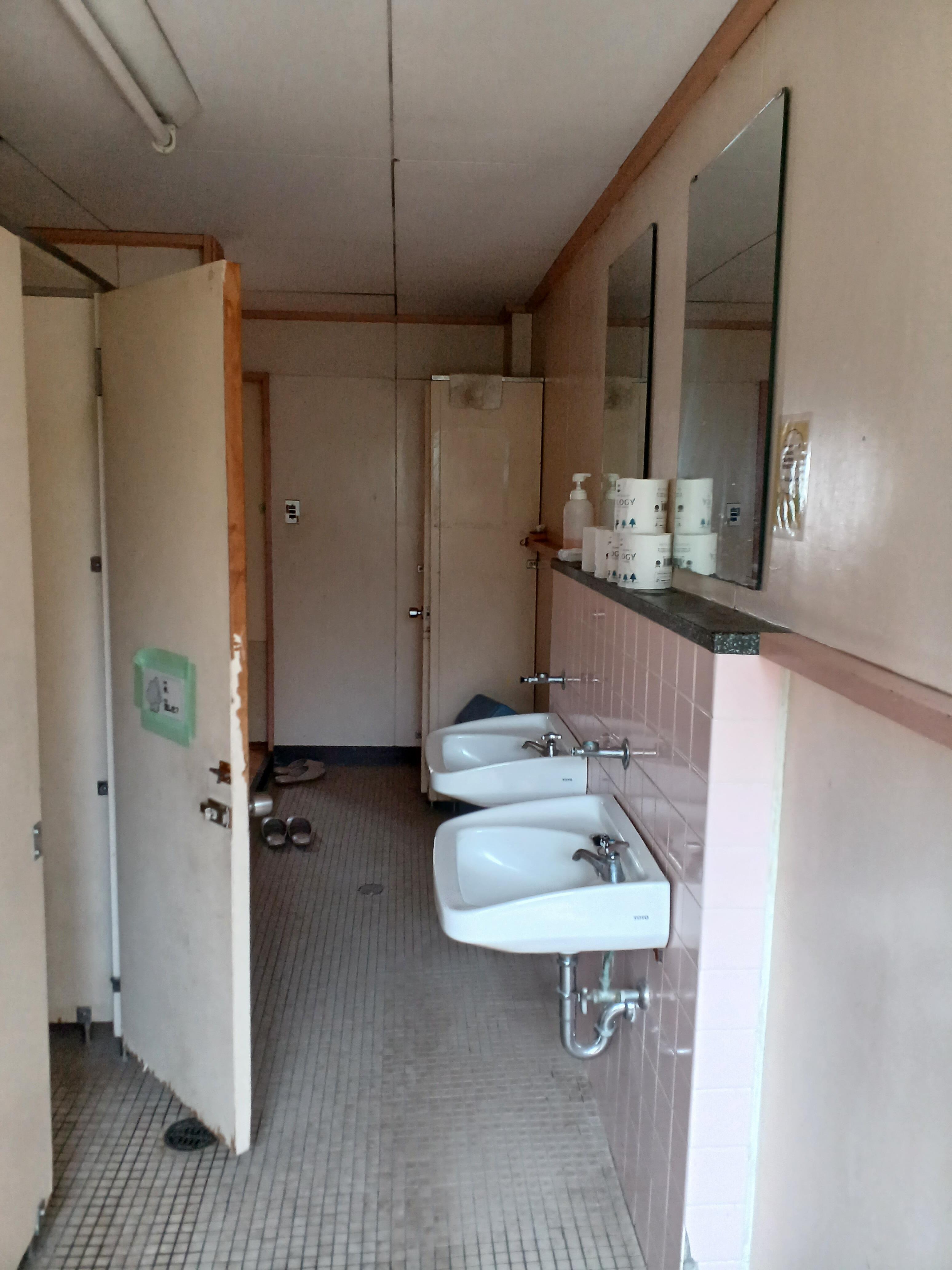 体育館内トイレ、器具庫、更衣室の改修工事をさせて頂きました。 自動照明・自動水栓となったことで節電・節水につながり、 床も従来のタイルとは違い長尺シートになったことで、汚れが付きにくく落としやすくなりました。